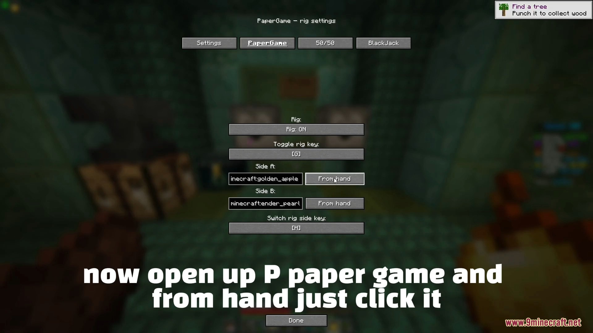 P→ choose Paper Game → click From Hand. - This assigns the held item to the first dropper slot.