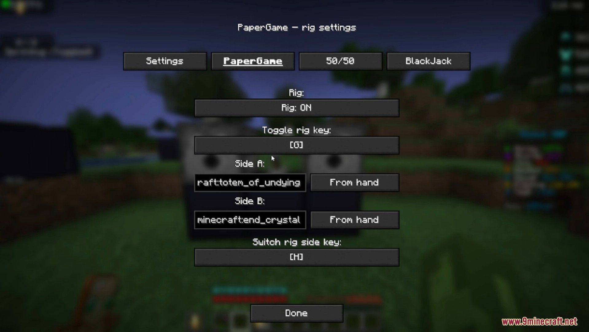 Gamble Rig Mod (1.21.1) is a lightweight gambling control mod designed for DonutSMP and private SMP servers, allowing players and event hosts to influence and manage the outcomes of popular gambling games such as Paper Game, 50/50, Blackjack, and Roulette with high precision and stability.