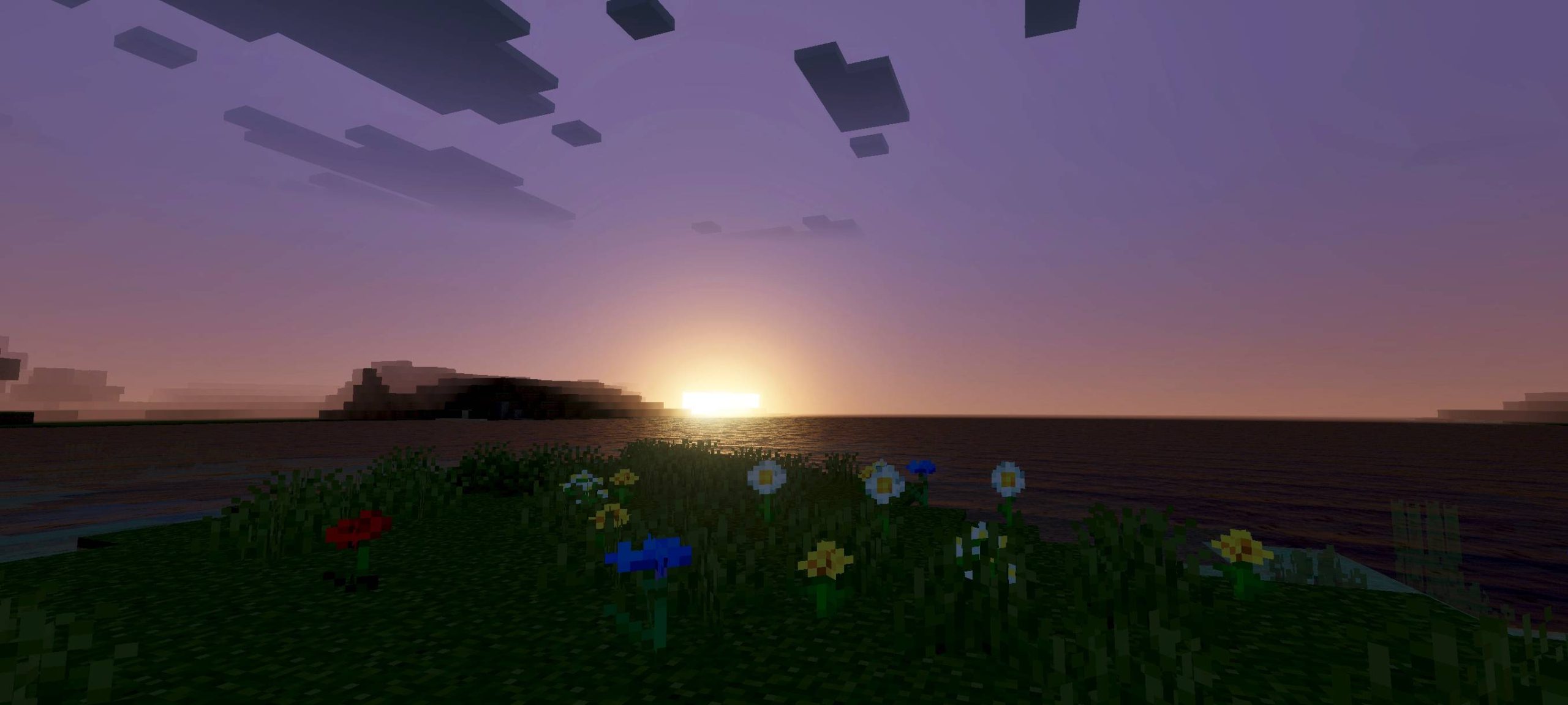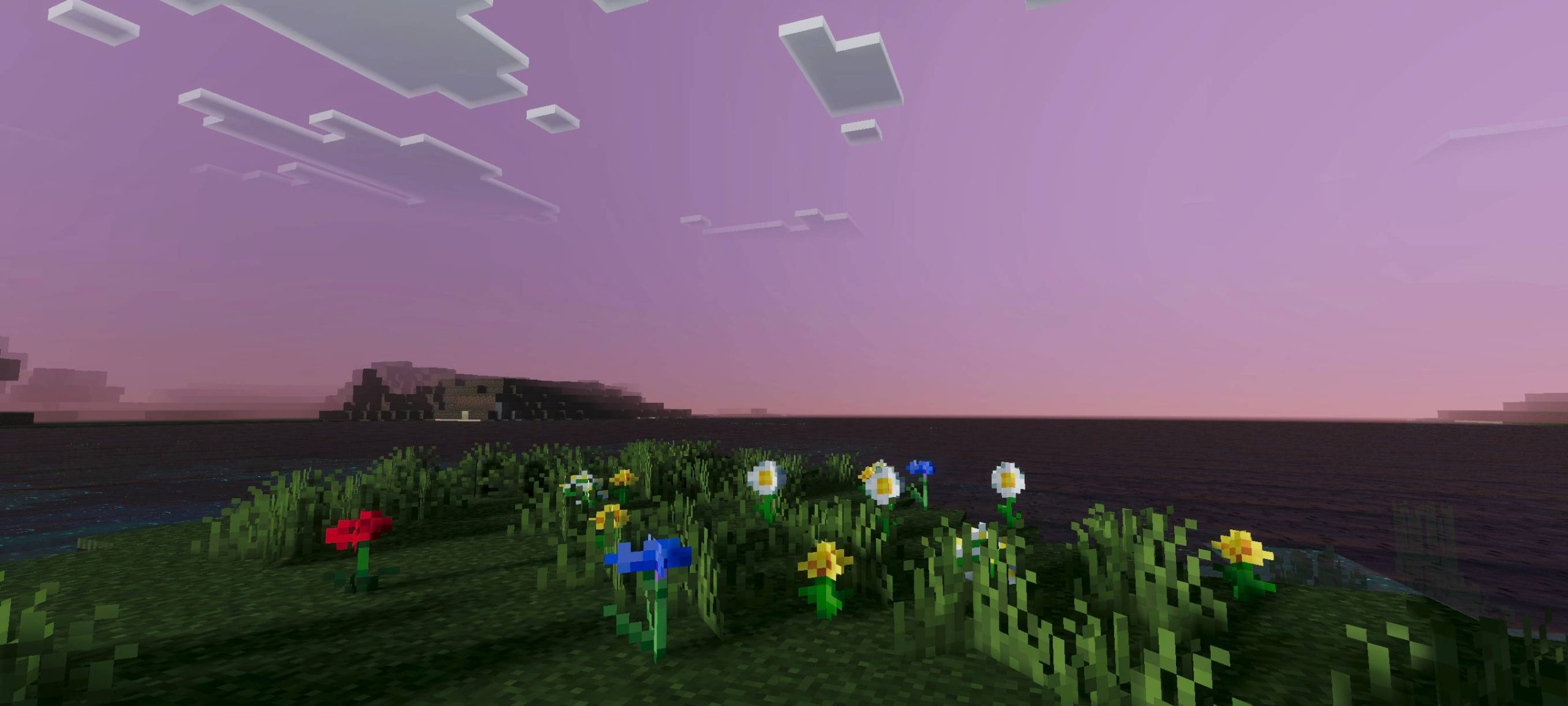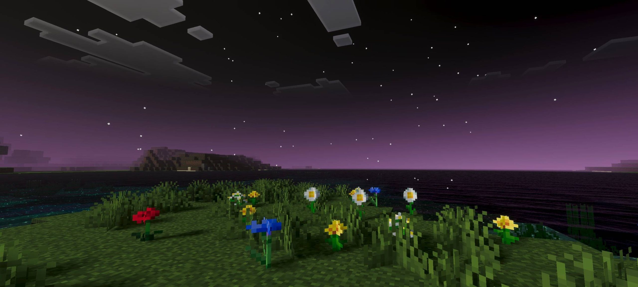 Gaster Visual Shade Shader changes the visuals to match the Gaster character style. It creates a twilight atmosphere combining warm sunset colors with a starry night sky. The soft lighting and balanced colors create a peaceful scene.