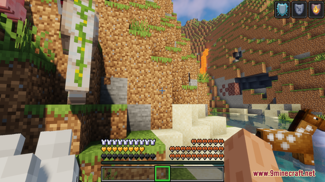 Glorious Status Bars Resource Pack (1.21.10, 1.20.1) aims to give your GUI a sleek, modern update: health, hunger, and armor icons are all redesigned into bold, clean status bars for a more polished and readable interface. It also adds mod support – you can enable colored armor bars (for mods that use them), integrates with AppleSkin for saturation outlines, and includes toggleable GUI elements via Resource Pack Options. It’s ideal for players who want a modern, minimal HUD without breaking away from a simple, vanilla-friendly aesthetic.
