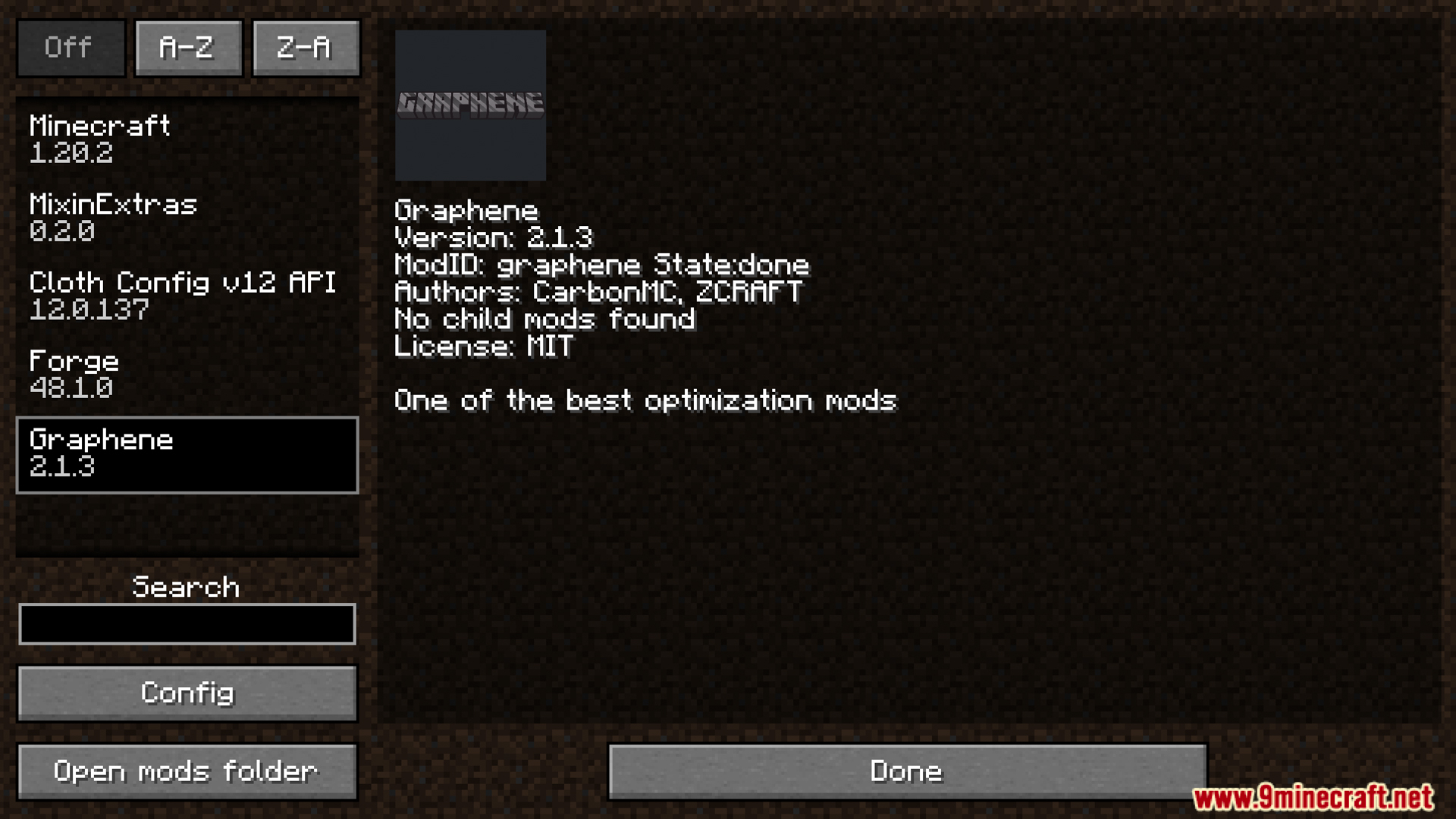 Graphene Mod (1.21.8, 1.20.1) is a powerful, open-source performance mod for Minecraft that fixes vanilla bugs and greatly improves frame rate, startup speed, and server performance. It works with almost everything in your mod folder and remains highly configurable, so you can turn features on or off as needed. Whether you run a light client or a 400-mod kitchen-sink pack.