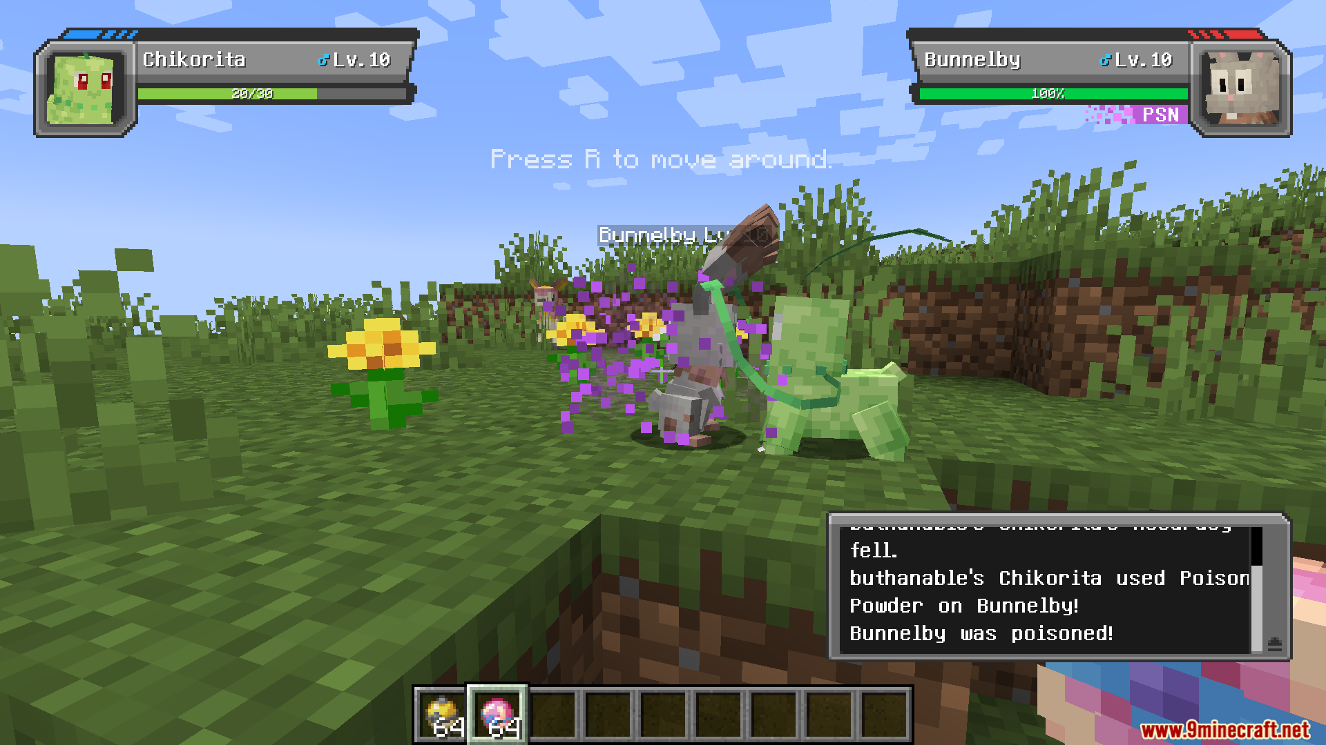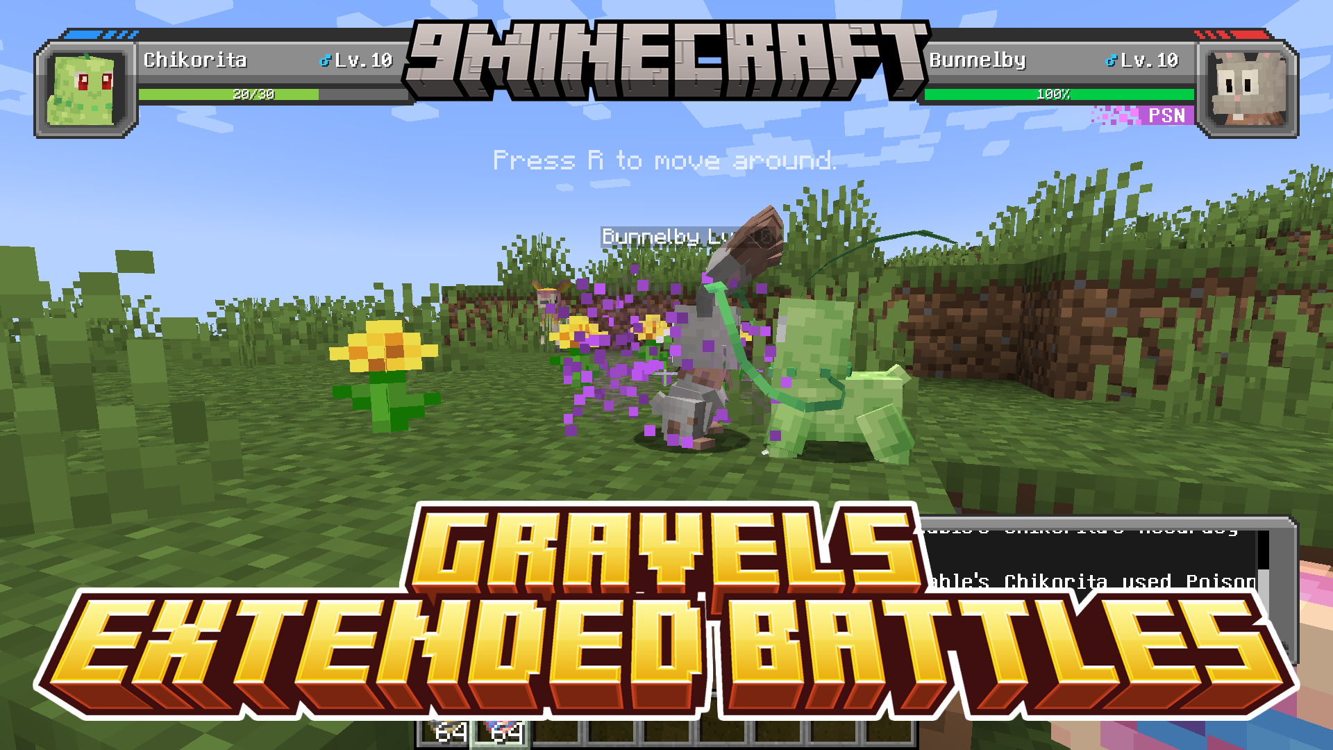 Gravels Extended Battles (1.21.1, 1.20.1) adds new move-types, abilities, and battle mechanics similar to fan-game styles.
