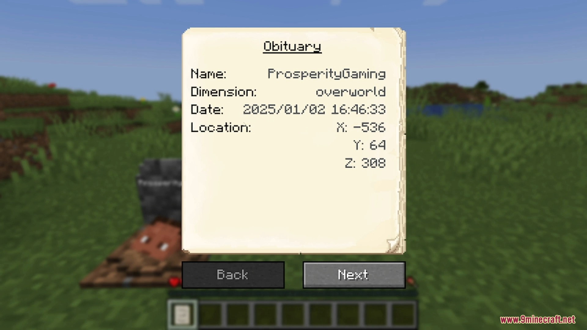 Admins can obtain a pre-made restore command by sneaking and right-clicking an obituary.