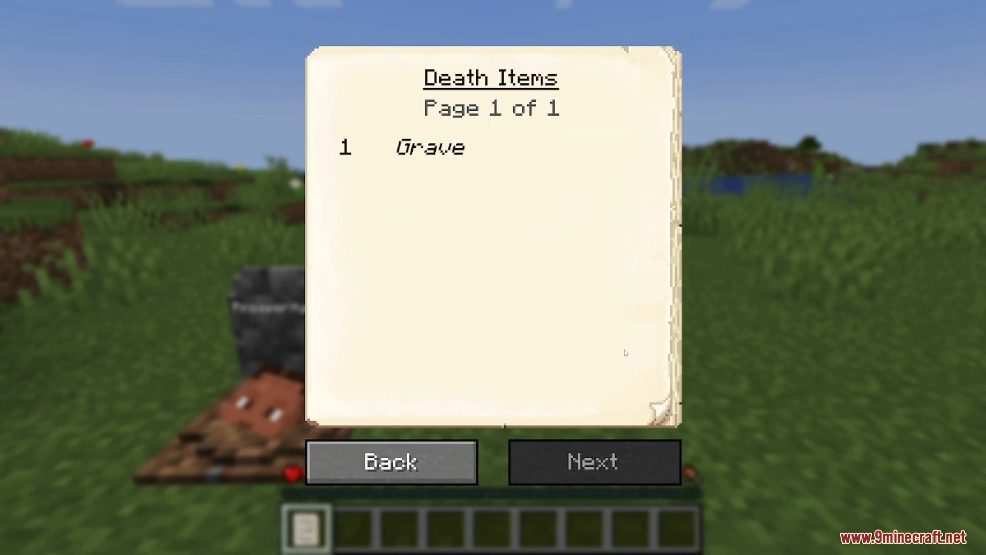 - If the player dies inside a block, the grave appears at the nearest free space above.