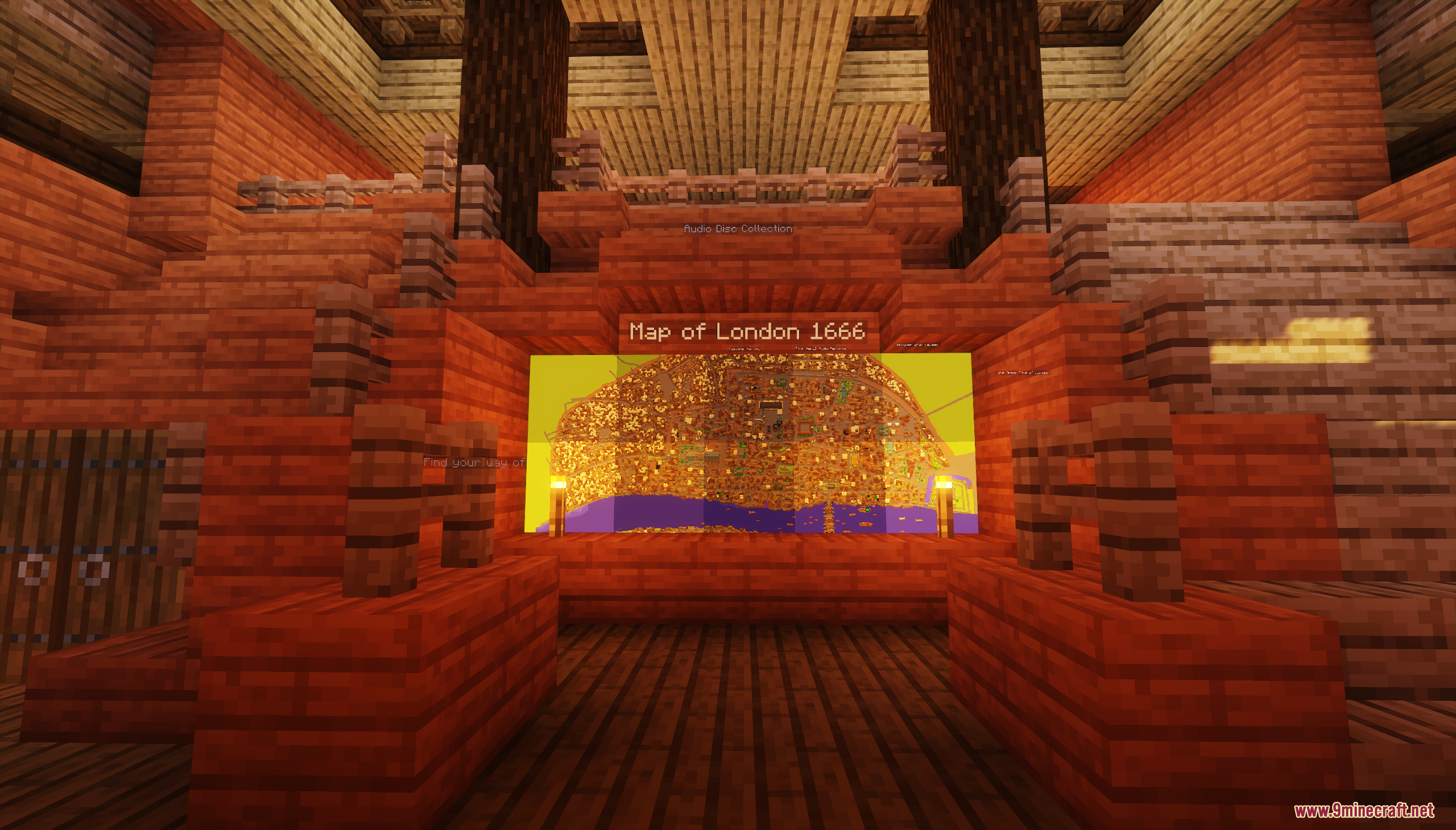 Great Fire 1666 Map (1.21.11, 1.20.1) invites players to explore the City of London as it stood just before the devastating Great Fire of 1666. This detailed historical world recreates famous landmarks such as London Bridge, the old St Paul’s Cathedral, and Pudding Lane, allowing you to walk through the streets of a city frozen in time. As you explore, you can discover scattered maps, paintings, and history books that reveal what life in London was like over 350 years ago. Blending education with adventure, the map also introduces story-driven challenges that let players uncover the causes of the fire, help battle the flames, and even take part in rebuilding the city.