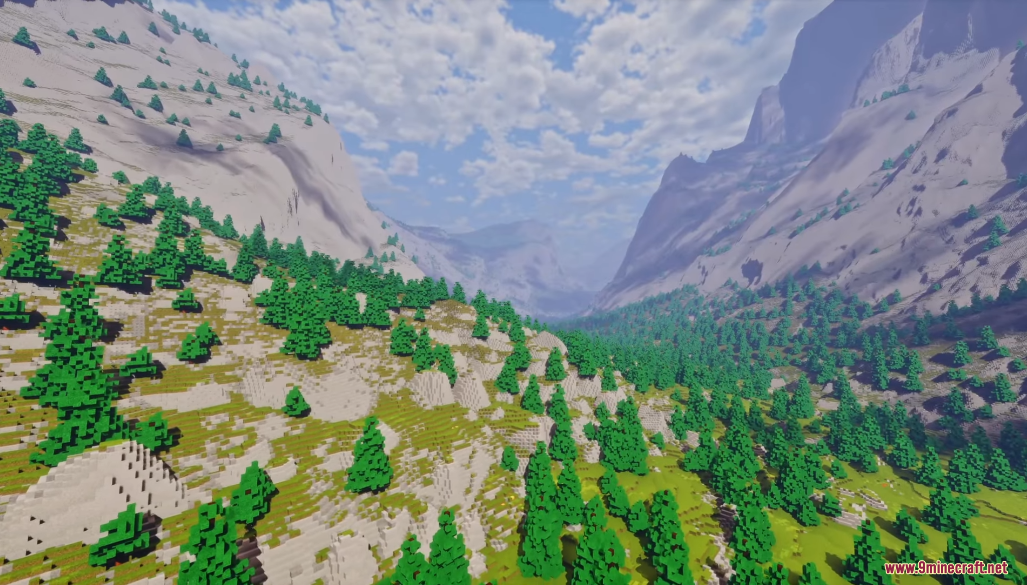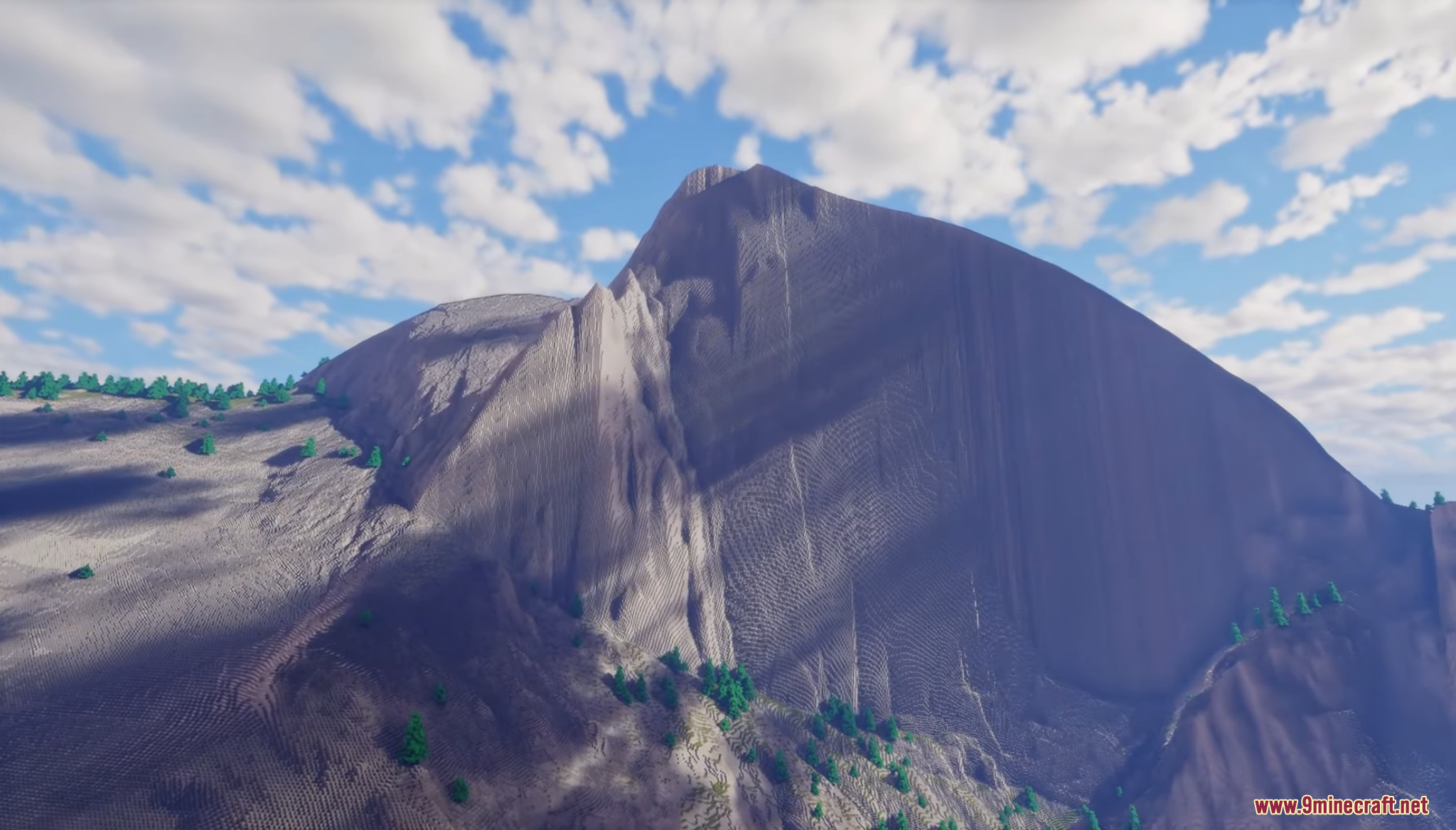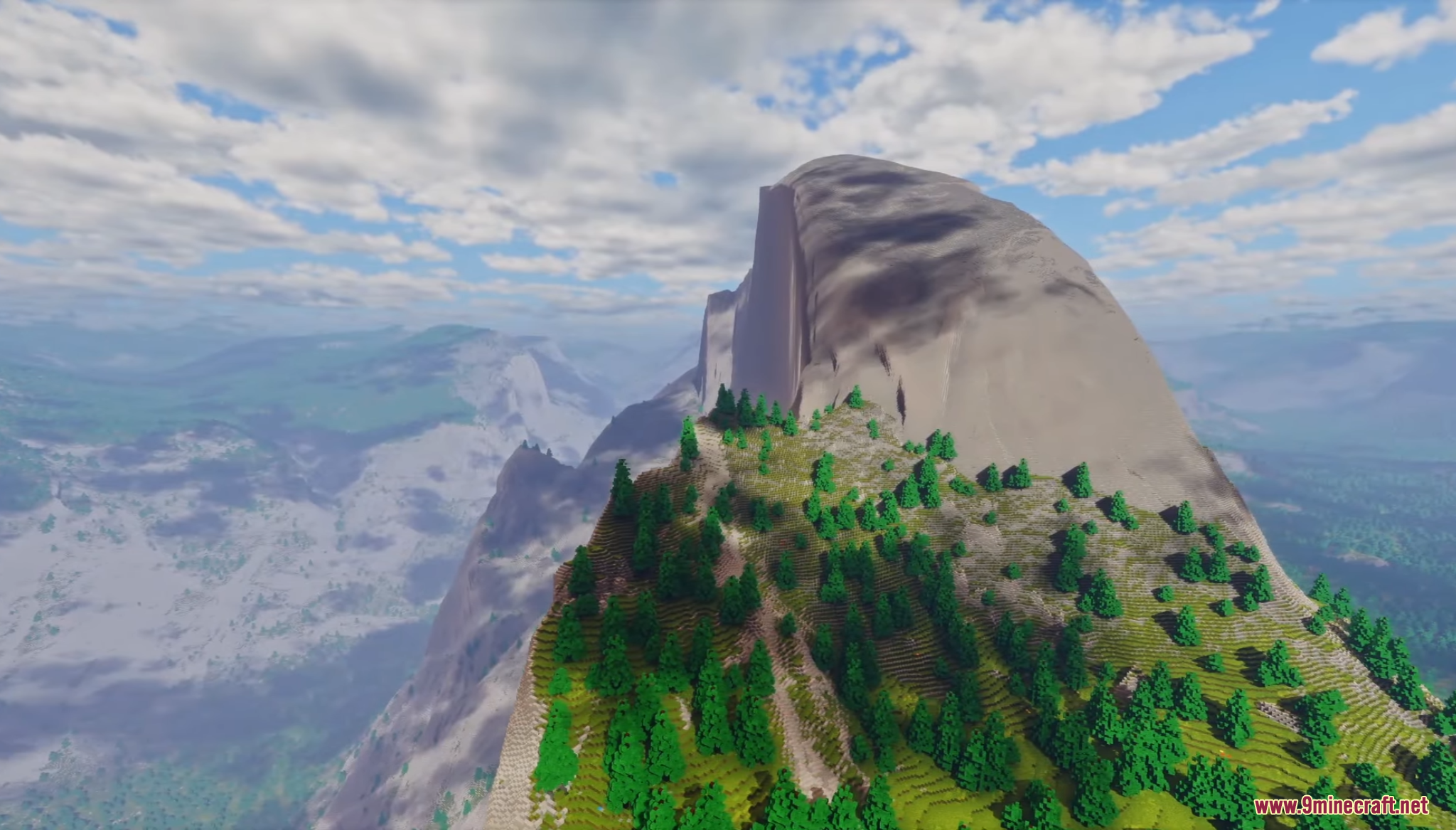 Half Dome Map (1.21.10, 1.20.1) brings the stunning grandeur of Yosemite Valley into Minecraft at a true-to-life 1:1 scale. The map features landmark wonders like Half Dome, Quarter Dome, and even Yosemite Falls – all precisely placed to mimic their real-world geography. This world offers a breathtaking and faithful digital recreation of Yosemite’s natural beauty, making it perfect for virtual exploration and immersive sightseeing.