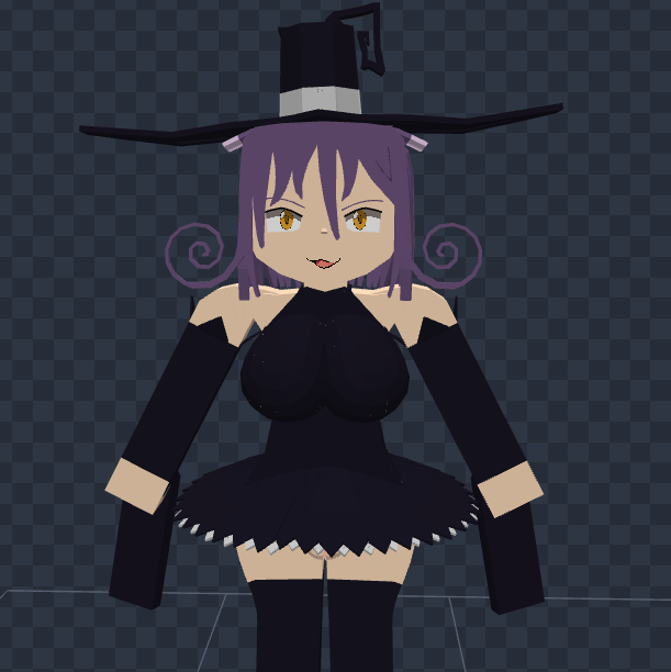Halloween Blair Azu Jenny Mod Model replaces the default model with a Halloween witch anime-style design: purple curly hair, yellow eyes, wide-brim black witch hat, off-shoulder black dress with frills, thigh-high stockings. Blair originates from the manga/anime series Soul Eater, where she’s a magical cat who transforms into a flirtatious witch with powerful spells and fanservice elements.
