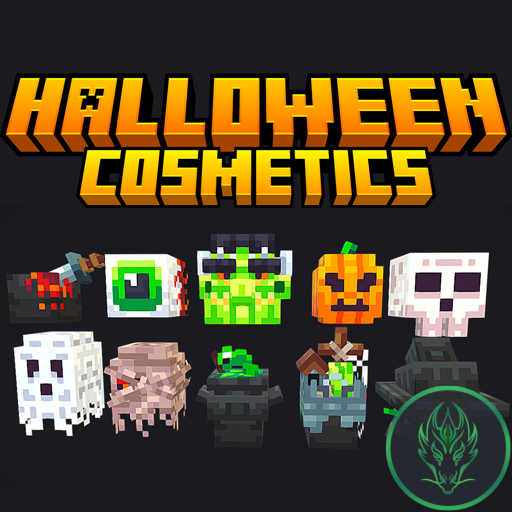 Halloween Cosmetics Pack Model includes the cosmetics – Knife Hat – Big Eye Head – Frank Head – Pumkin Head – Skeleton Head – Ghost Head – Mummy Head – Cauldron Hat – Graveyard Hat – Witch Head included in Oraxen Configuration (Drag and Drop) ItemAdder Configuration (Drag and Drop)