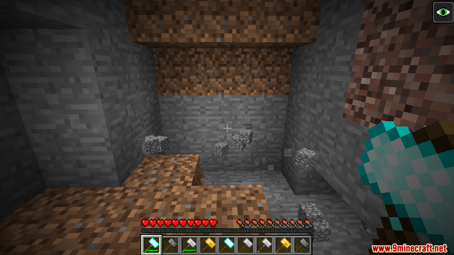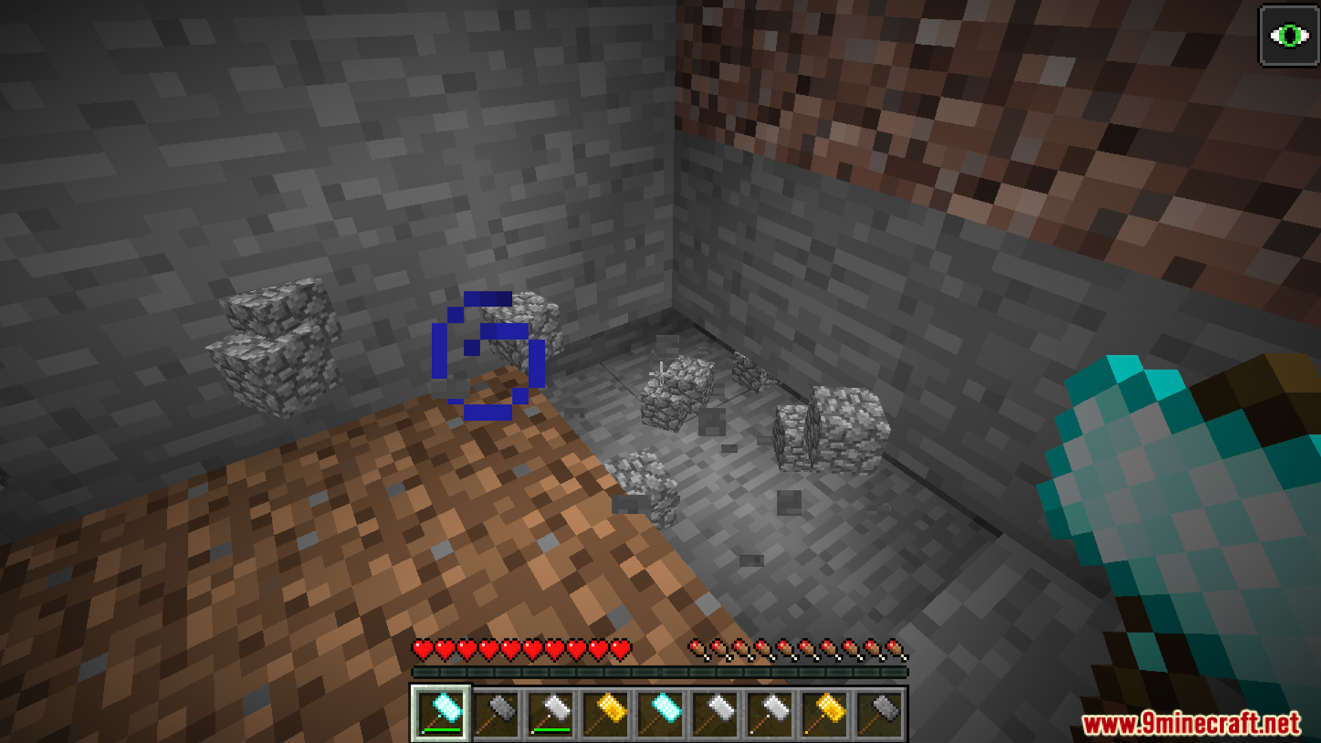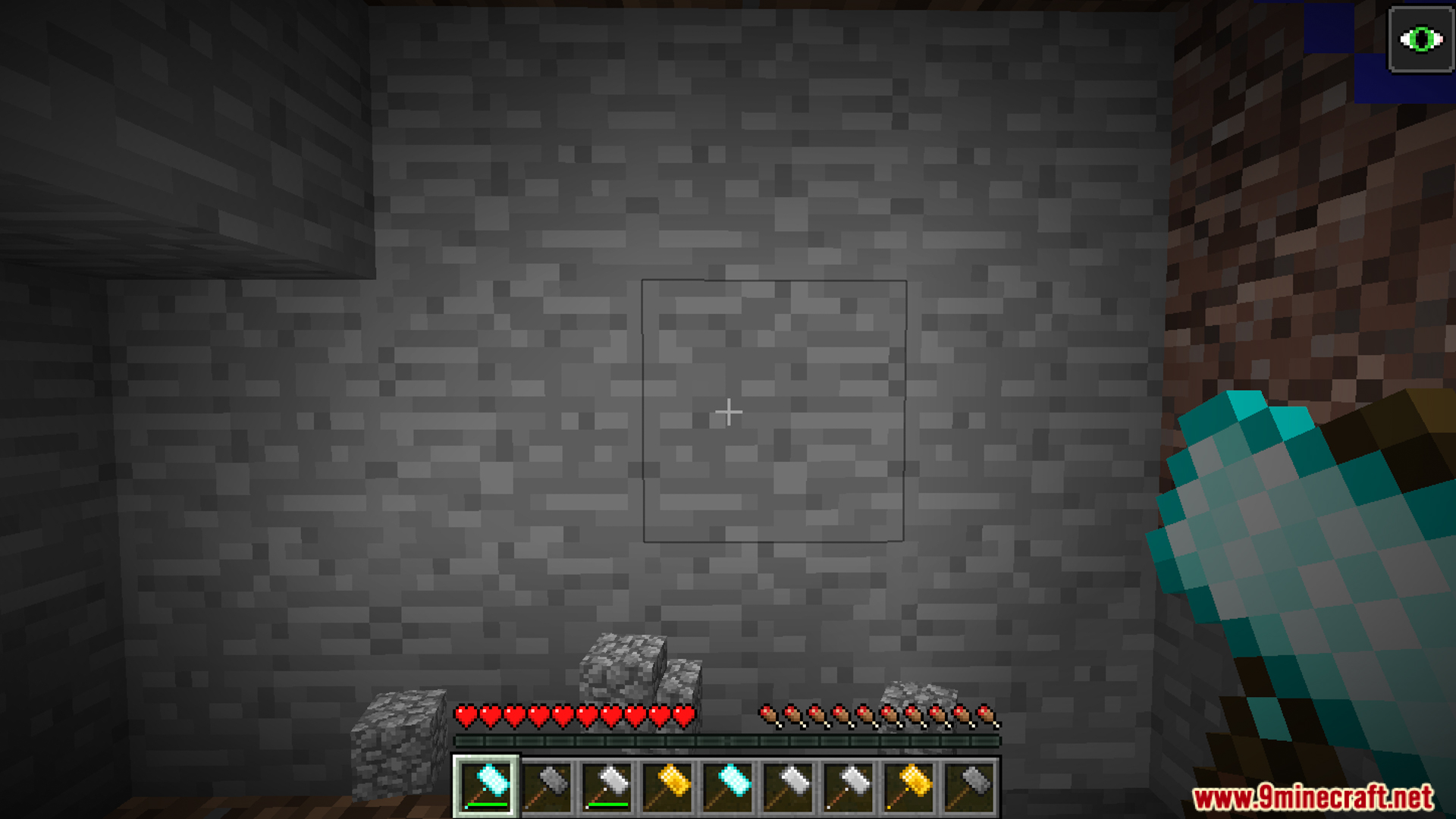 - Basic hammers mine 3x3x1 stone blocks, more efficient than pickaxes.