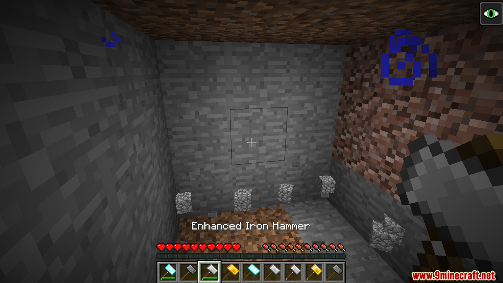 Hammers 3×3 Mod (1.21.8, 1.20.1) is a vanilla-friendly mod that adds a hammer tool to mine stone blocks in a 3x3x1 area more efficiently than a pickaxe. The mod introduces basic hammers and enhanced hammers (more durable, require Enhanced Sticks), along with the Seismic Shift enchantment to expand to 5x5x1.