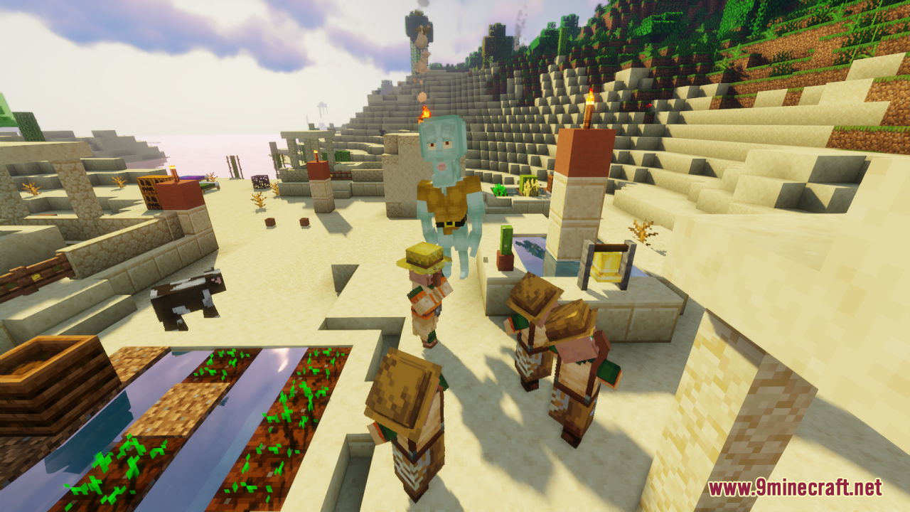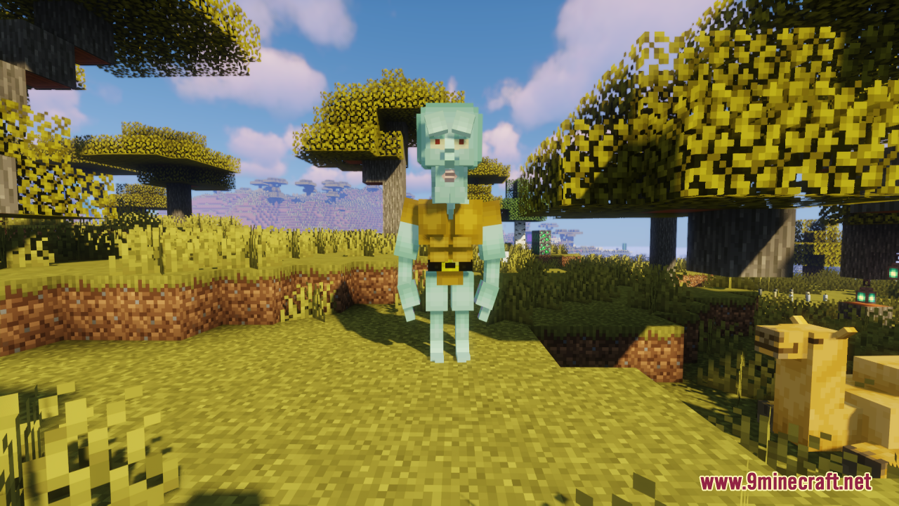 Handsome Squidward Resource Pack (1.21.10, 1.20.1) is a fun and quirky 32 × resource pack that replaces the texture and model of the Iron Golem with a stylized version of the iconic “Handsome Squidward” character from SpongeBob SquarePants. It’s designed purely for humor and aesthetics – no gameplay mechanics are changed – but it does require OptiFine in order for the custom golem model to properly display. This pack is ideal for players who want a light-hearted aesthetic tweak – especially meme lovers or anyone looking to add some comedic flair to their Minecraft world.
