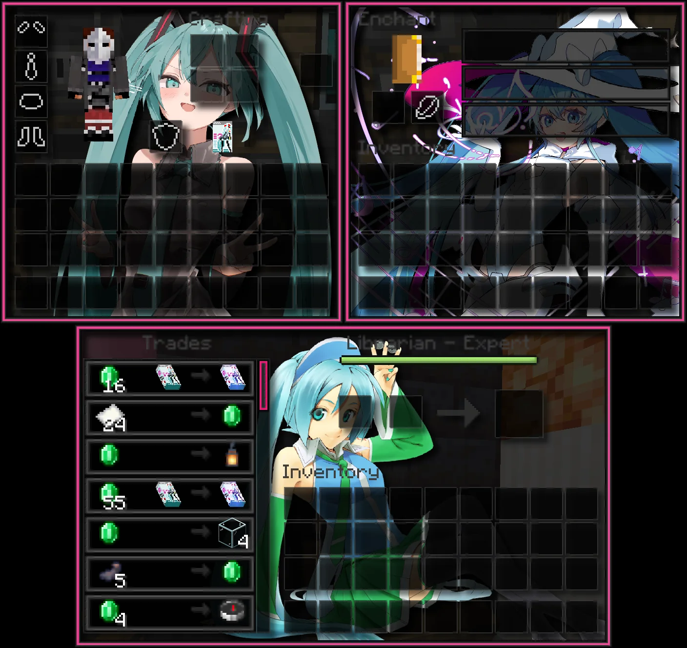 Hatsune Miku Resource Pack (1.21.10, 1.20.1) is inspired by the famous virtual diva Hatsune Miku. It’s a fanservice-oriented resource pack that makes you feel like you’re playing a special version of Minecraft made just for Miku fans.