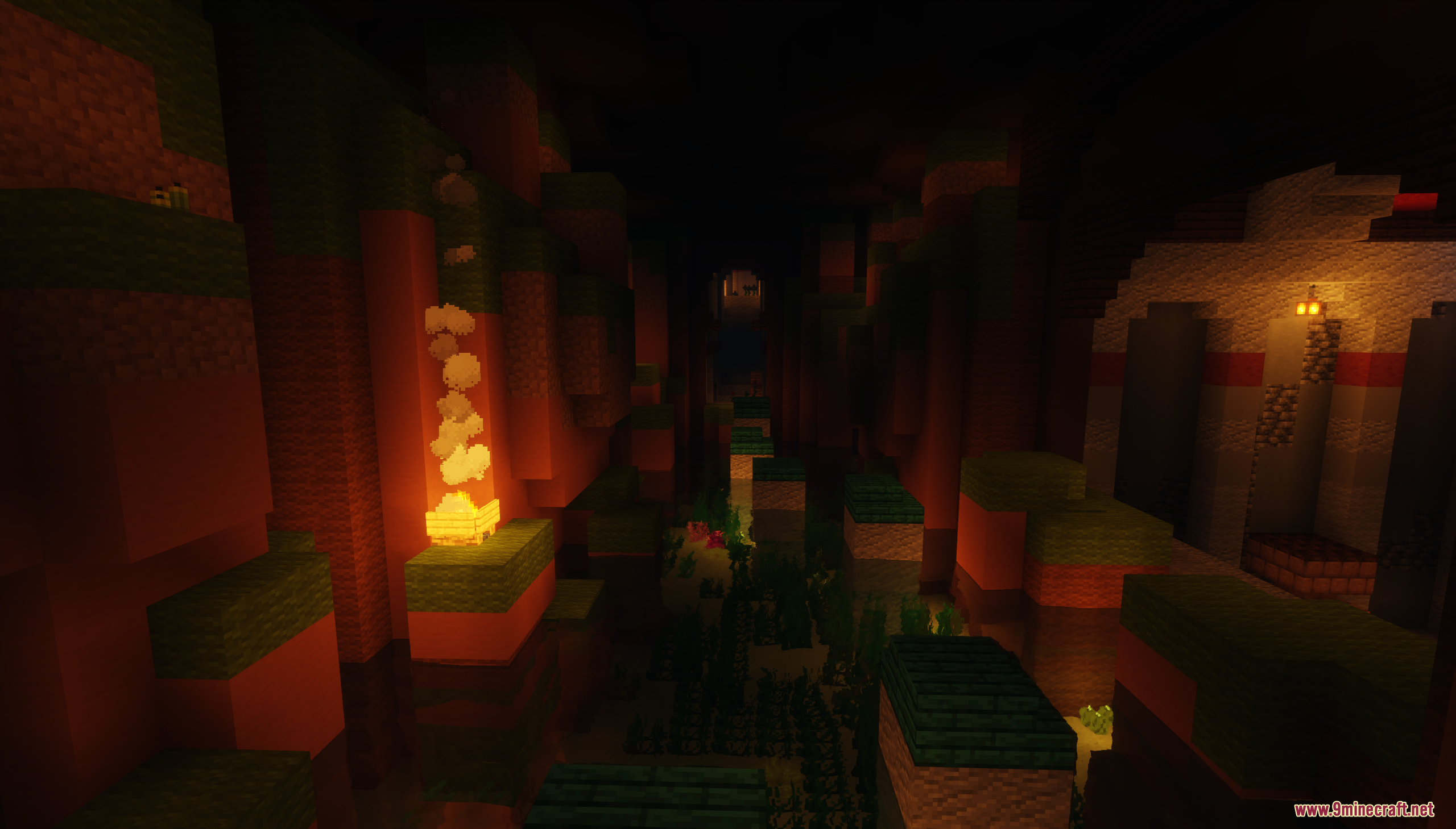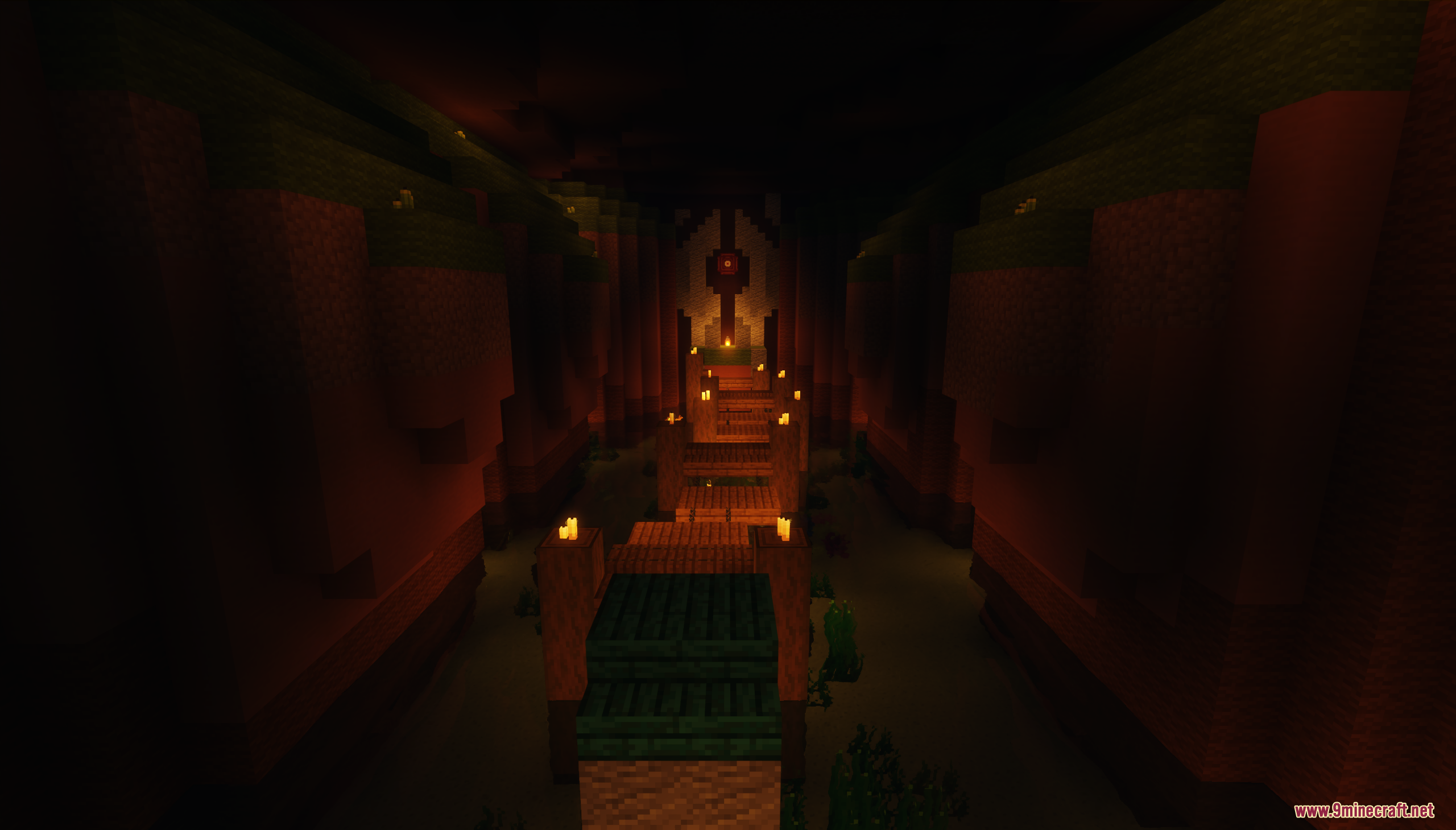 Haunted Progressive Dungeon Map (1.21.10, 1.20.1) welcomes you to an eerie underground maze filled with danger and mystery. Explore dark corridors, climb twisting staircases, and fight your way through multiple rooms crawling with challenges. Test your skills in natural and lava parkour areas, each hiding valuable treasure chests. At the end awaits the ultimate challenge — the boss room, where the true terror of the dungeon reveals itself.