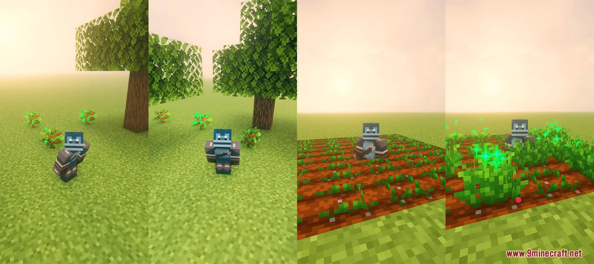 Haven Growth Mod (1.21.1, 1.20.1) redefines the art of plant cultivation in Minecraft by introducing an immersive and interactive approach. Tired of staring at the crops and saplings to grow? Look no further than the install button. All you need to do is to spam Crouch or Sprint and anything that can will grow near you (adjustable in the config).