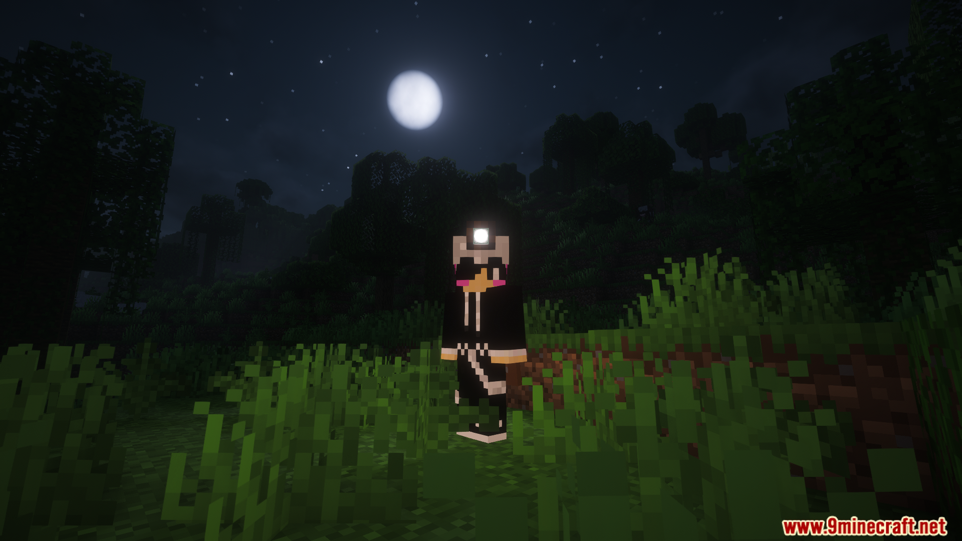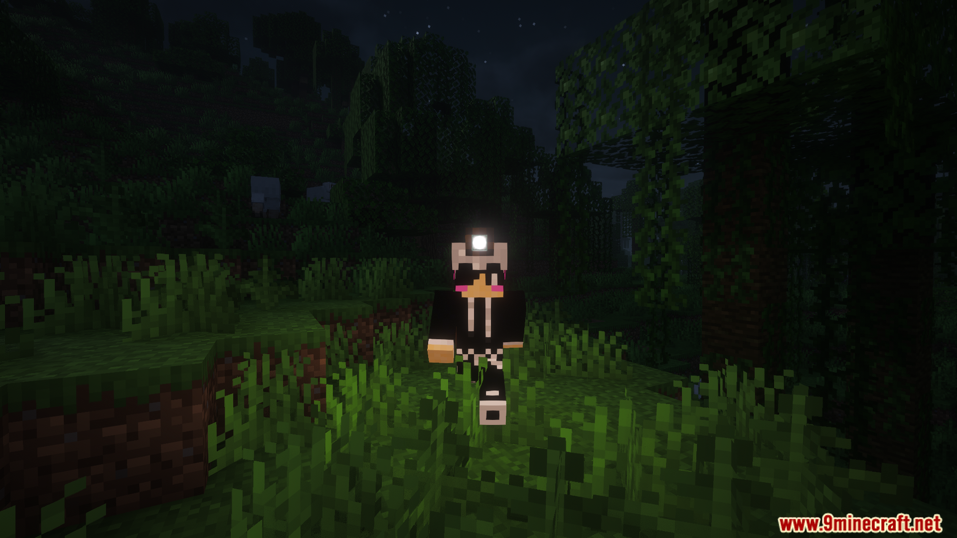 - Provides a head‑mounted light source that follows the player.