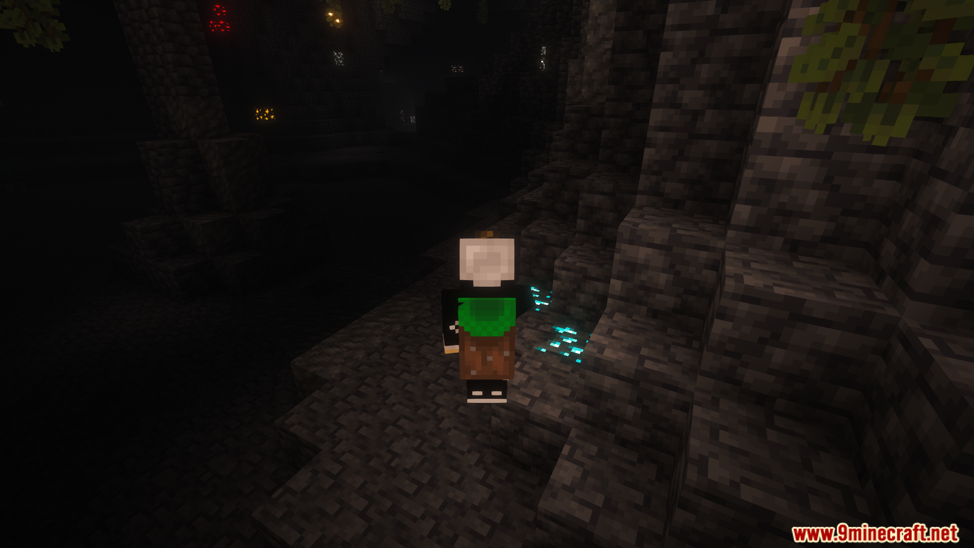 - Illuminates caves, mines, and dark areas without placing torches.