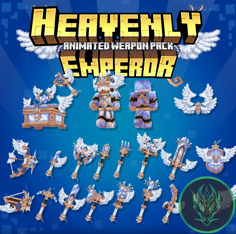 Heavenly Emperor Animated Weapon Set Model is a premium Minecraft model pack featuring a wide range of animated weapons and cosmetics designed for immersive gameplay customization. It includes not only weapons but also armor pieces, wings, and backpacks, making it a complete aesthetic upgrade for players