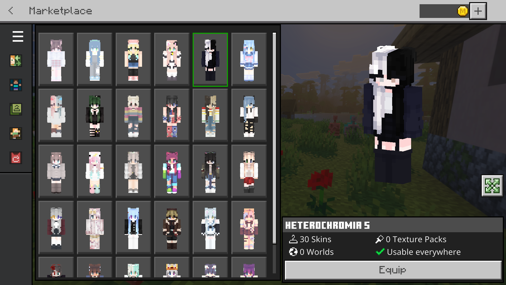 Heterochromia Skin Pack (1.21, 1.20) accentuates the beauty of two-colored eyes. Each skin is designed with different colored eyes, clothing, and hairstyles.