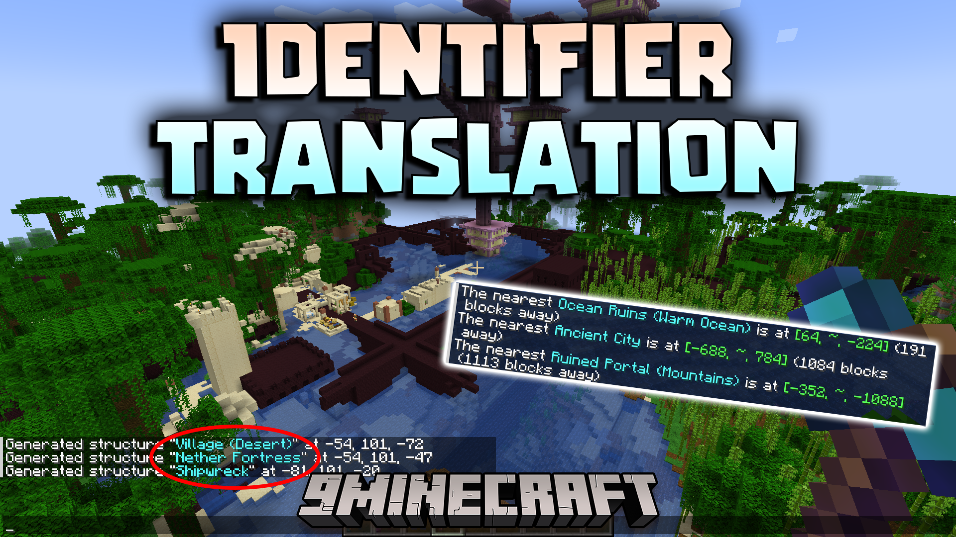 Identifier Translation Mod (1.20.1, 1.19.4) designed to translate Minecraft command feedback and suggestions into readable names for mobs, blocks, and structures.