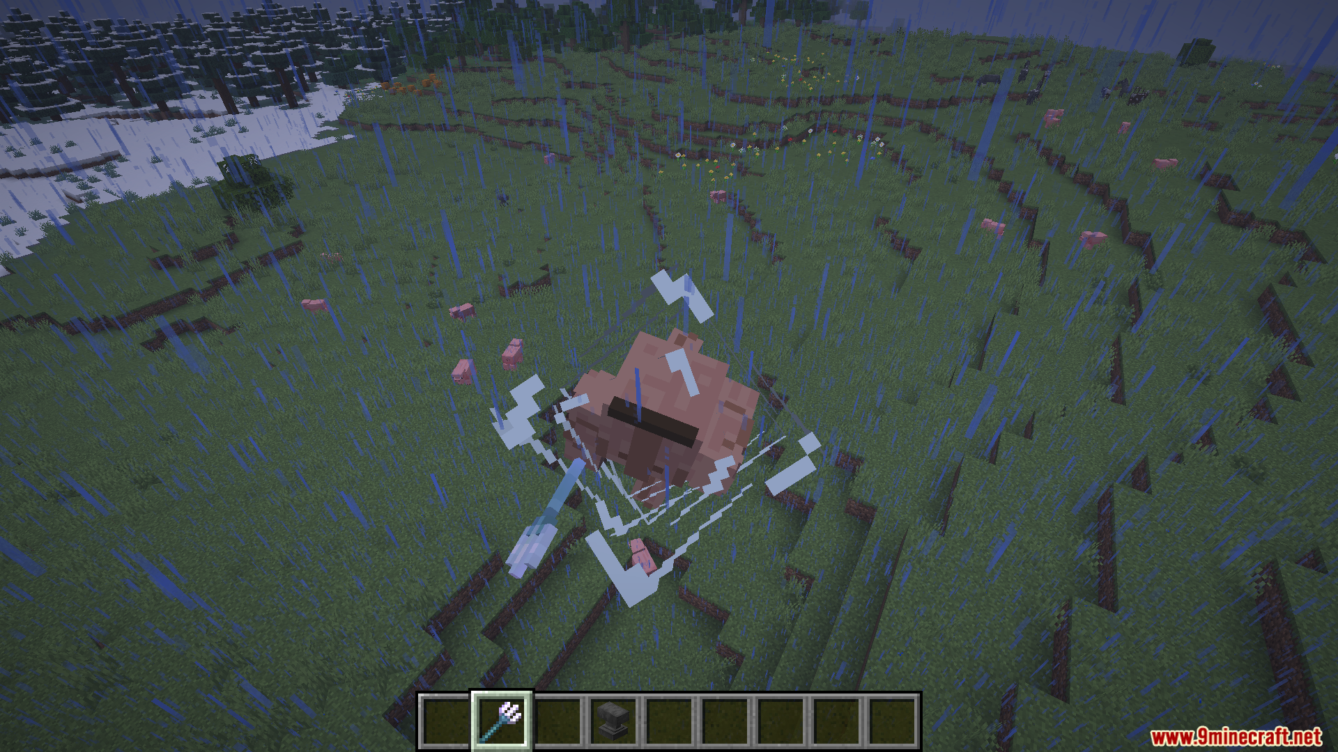 - Throw trident with Riptide when sneaking in water or rain.