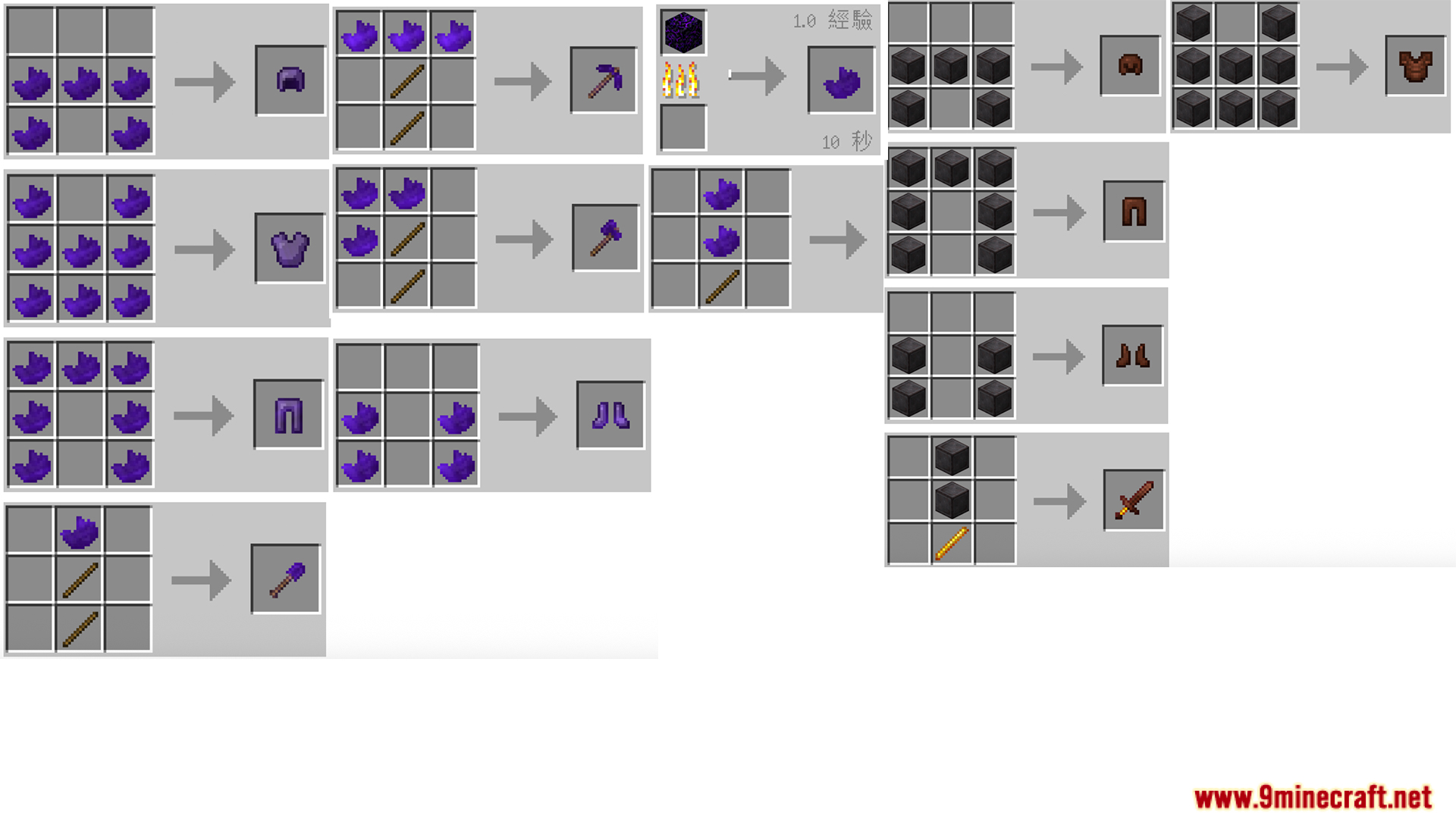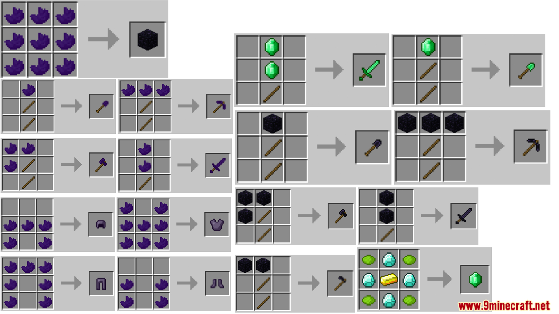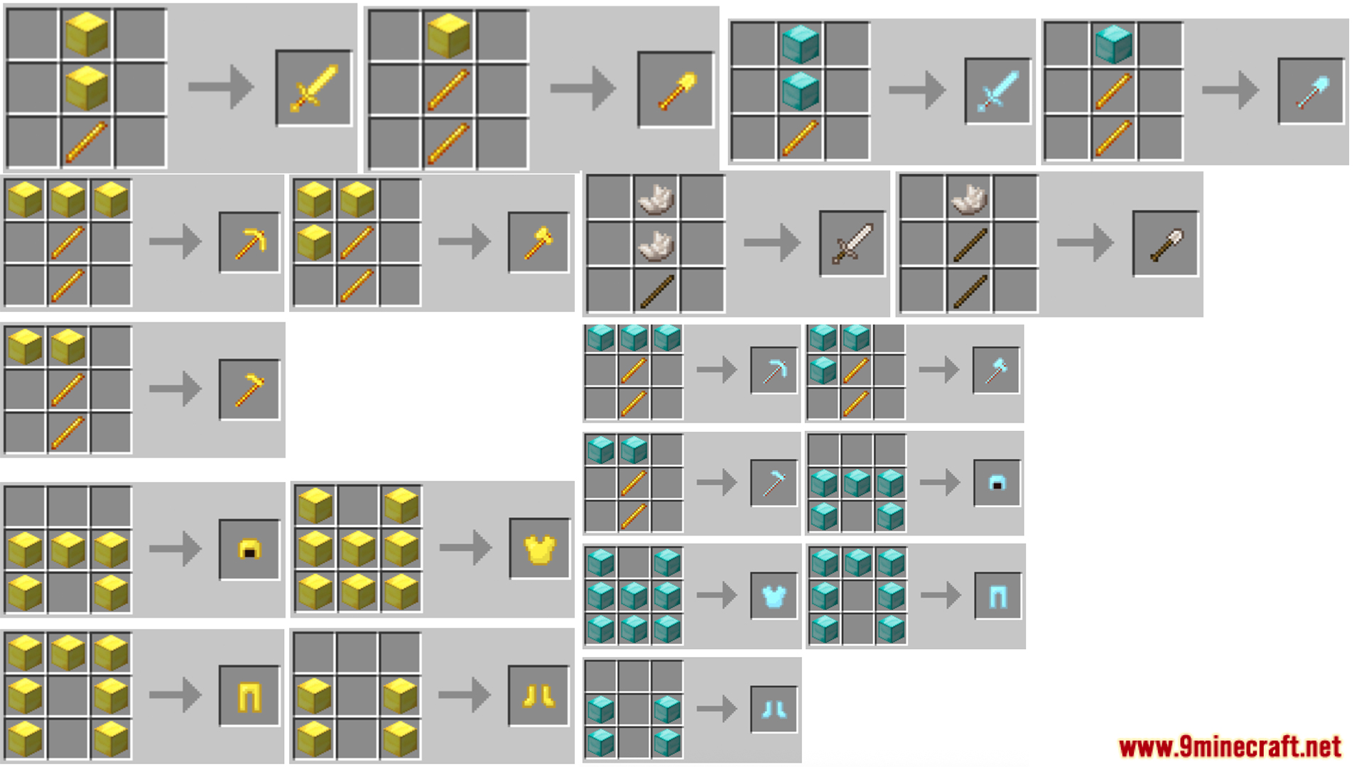 Recommend that you should install Just Enough Items (for mods using Forge) or Roughly Enough Items (for mods using Fabric) to view the full recipes included in this mod.