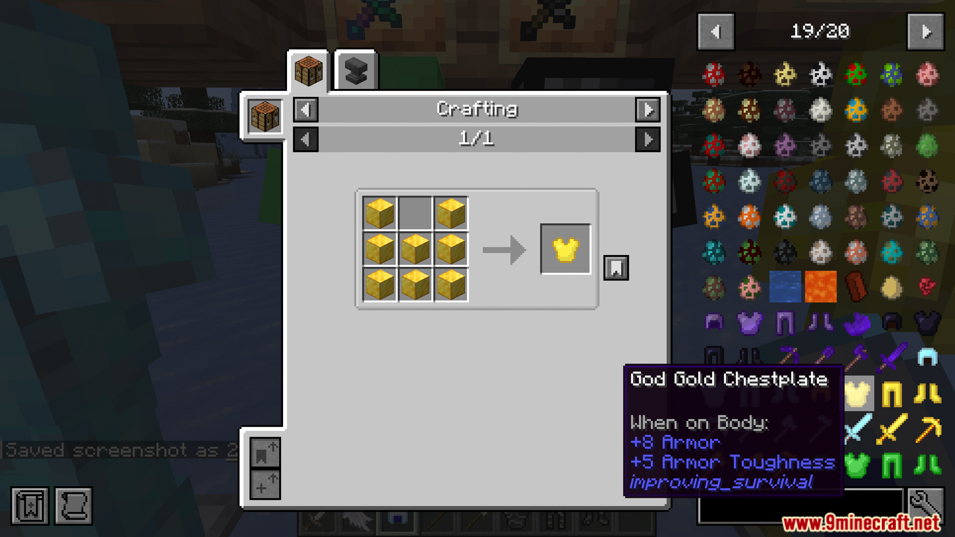 - Full God Gold armor: night vision and regeneration, protects from Creeper explosions