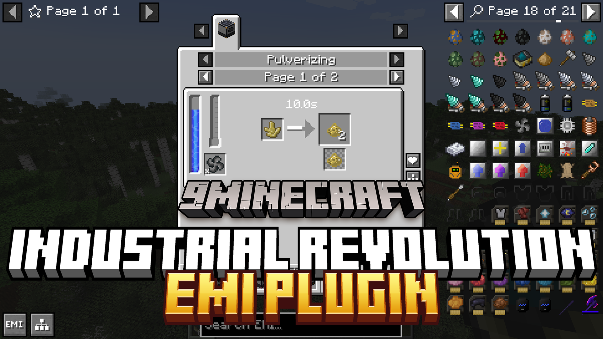 - Plugin adds all recipes from Industrial Revolution to EMI recipe viewer so players can easily see crafting, processing, ores, dusts, ingots, tools, armor, and other outputs correctly according to the original mod.