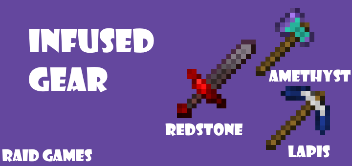 Infused Gear Addon (1.21) adds ways to upgrade equipment and armor in addition to enchantments. Combining equipment with blue stones, amethyst, or red dust alters stats such as durability and luck. Blue stones increase the chance of receiving good enchantments but halve maximum durability. Amethyst doubles the item’s durability.