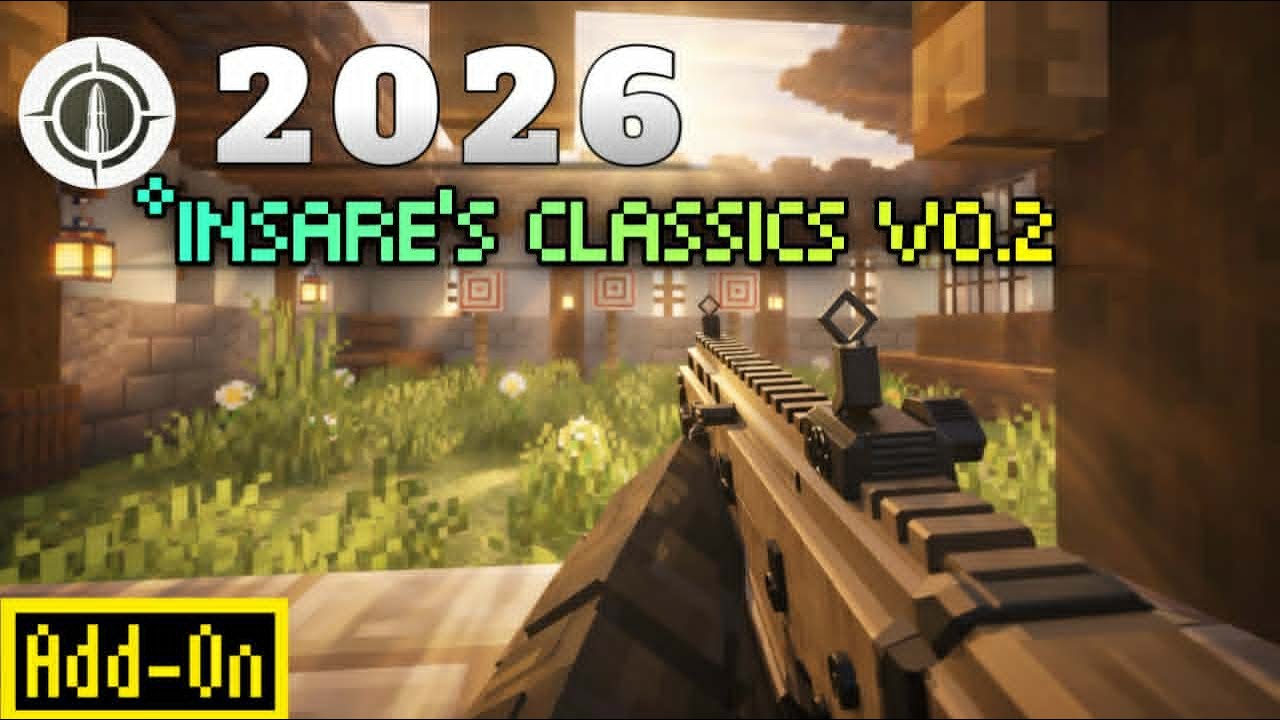 InSaRe’s Classics Addon (1.21) is a polished 3D guns and melee weapons addon, featuring realistic models blended with vanilla Minecraft style, smooth first/third-person animations (fully reworked in new update), custom bullet shell particles, magazine reloading, and adjustable firing modes (e.g., Glock 18 now full-auto with tuned spread).