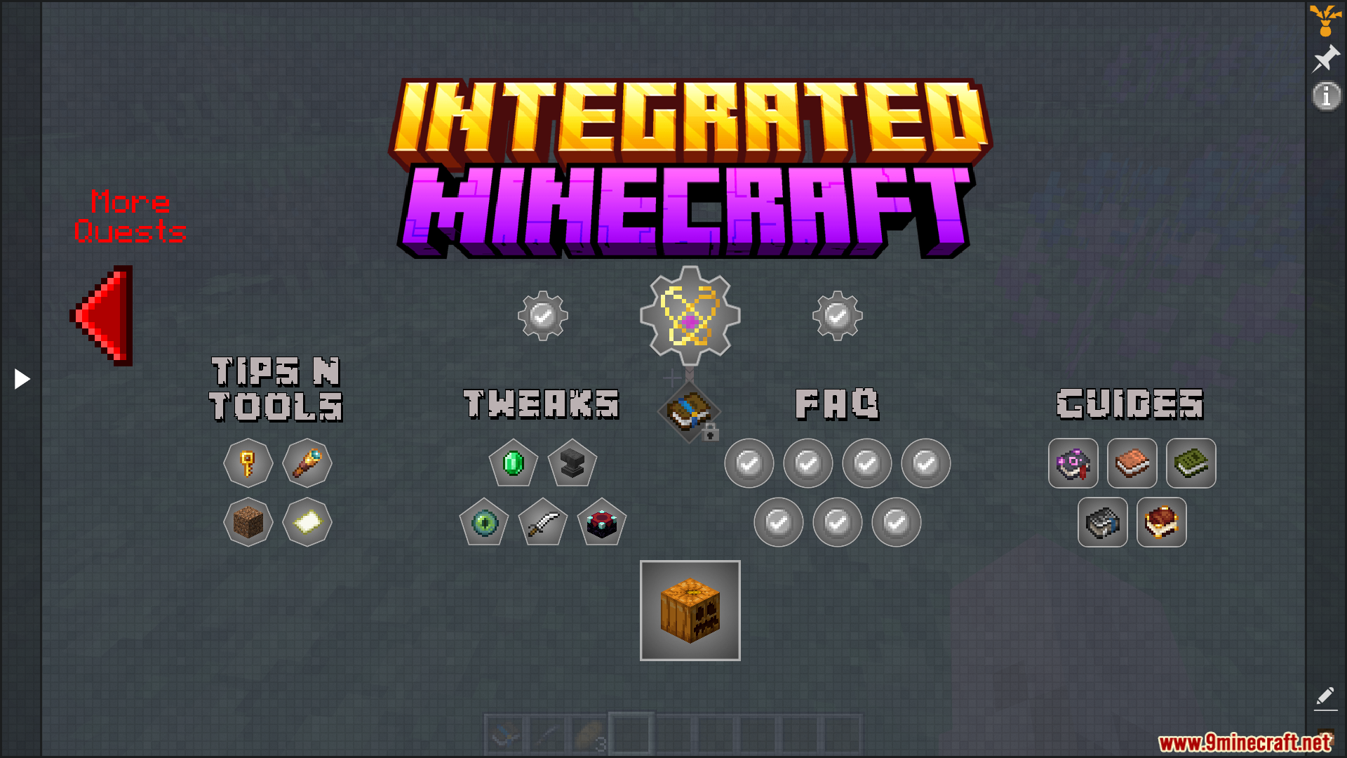 Integrated MC Modpack (1.20.1 ,1.20) focused on creating the best exploration experience out there. Using quests, recipes, lore, loot, and of course, structures, this pack brings every single mod together. The main goal of the pack is to unlock secret recipes for powerful weapons and items through exploring.