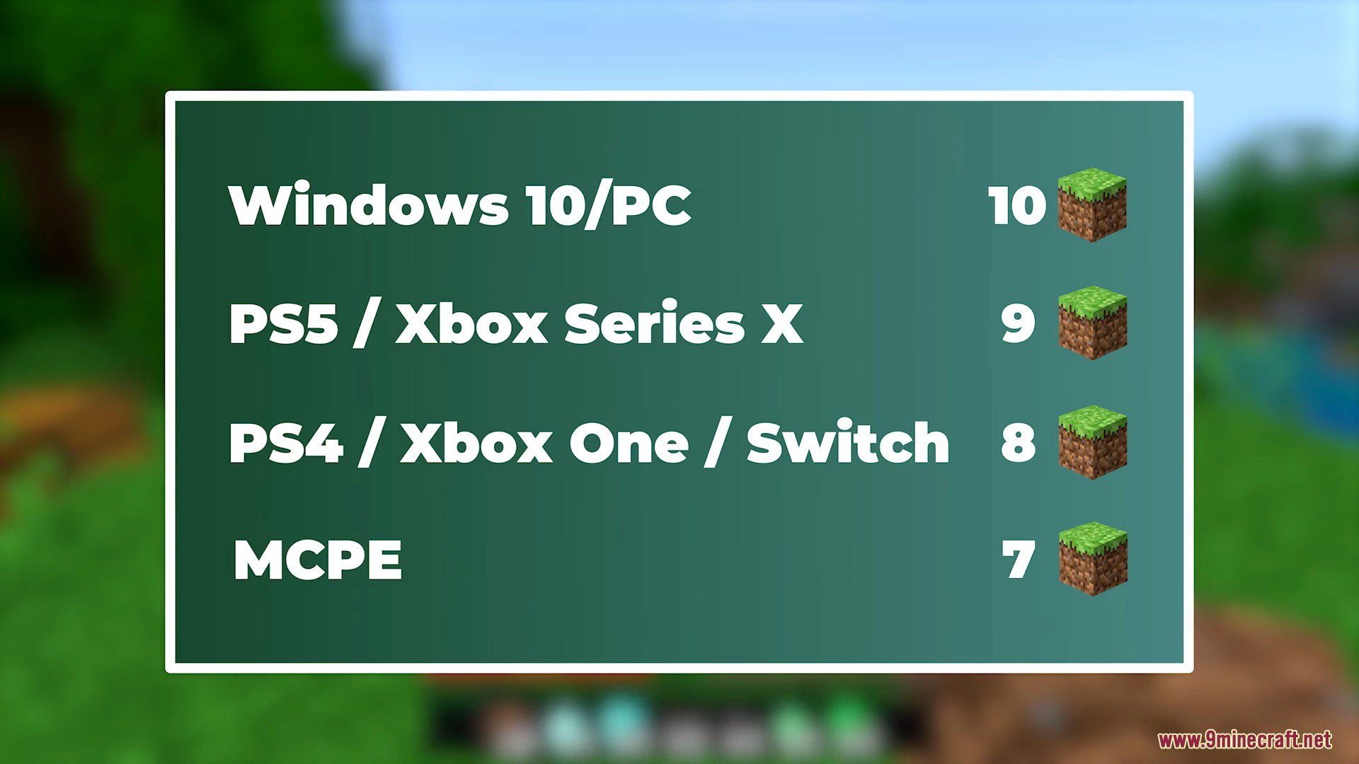 MCPE, PS5, Xbox, Switch, Windows 10.