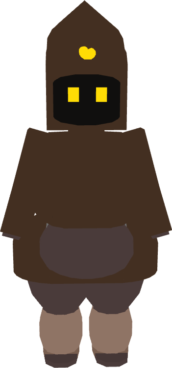 Jawa Goblin Model replaces the default Goblin model with a cute, hooded anime-style design: brown hooded robe with yellow heart emblem and eyes, kangaroo pocket, baggy brown pants/legs (adorable, plushie vibe). Jawas originate from the Star Wars franchise, small cloaked scavenger aliens from Tatooine known for trading droids and “Utinni!” chants; this is a chibi-fied, feminine Halloween/cute reinterpretation.