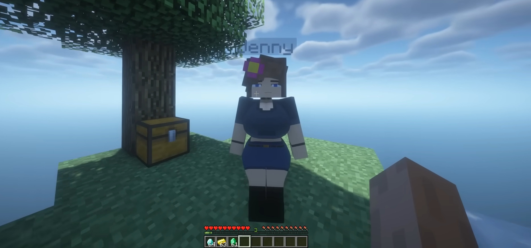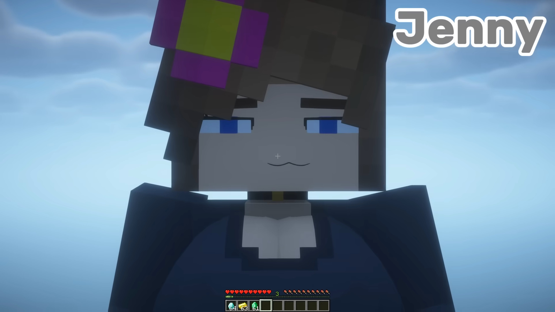 Jenny is a custom girl for the PleasureCraft Mod. Jenny is the central and most well-known female NPC in the Jenny Mod. She features a stylish purple outfit, brown hair decorated with a colorful flower accessory, and bright blue eyes that give her a confident and playful personality. This character includes multiple scenes that unlock through leveling and can be used directly in survival or creative worlds.