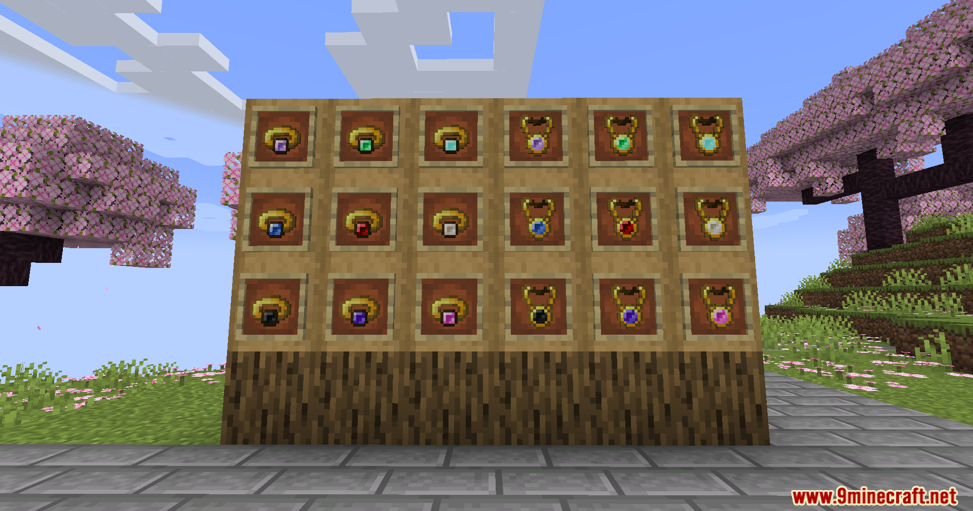 Jewelcraft Mod (1.20.1, 1.19.4) adds craftable rings and amulets using vanilla materials. Players can craft items using Gold, Iron, or Copper combined with various gem types.
