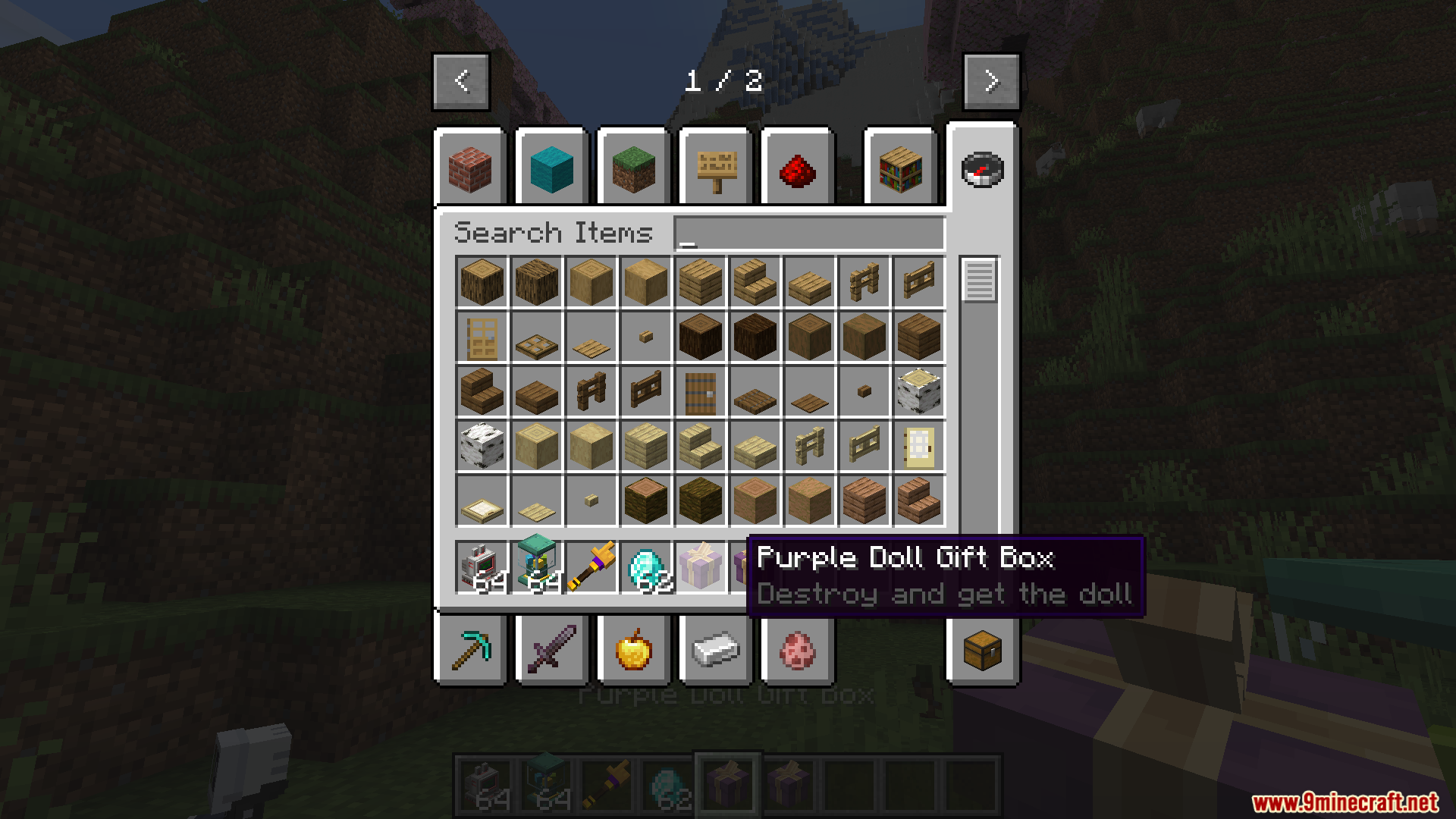 Kaleidoscope Doll Mod (1.21.4, 1.20.1) introduces a lottery machine mechanic. Players can use diamond tokens to draw gift boxes of varying levels, each containing collectible dolls. With over 200 unique dolls available, the mod adds a fun layer of chance and collection to gameplay.