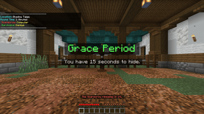 Killer Scarecrow Map (1.21) divides players into two factions: hunters and survivors. Survivors must find a way to survive until time runs out, while hunters must capture all other members. Each capture triggers a scare effect. The game allows players to choose maps, set time limits, and adjust difficulty. Single-player or multiplayer modes allow players to compete against the computer or against each other.