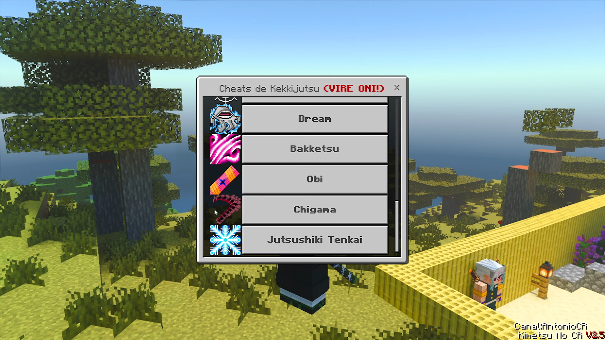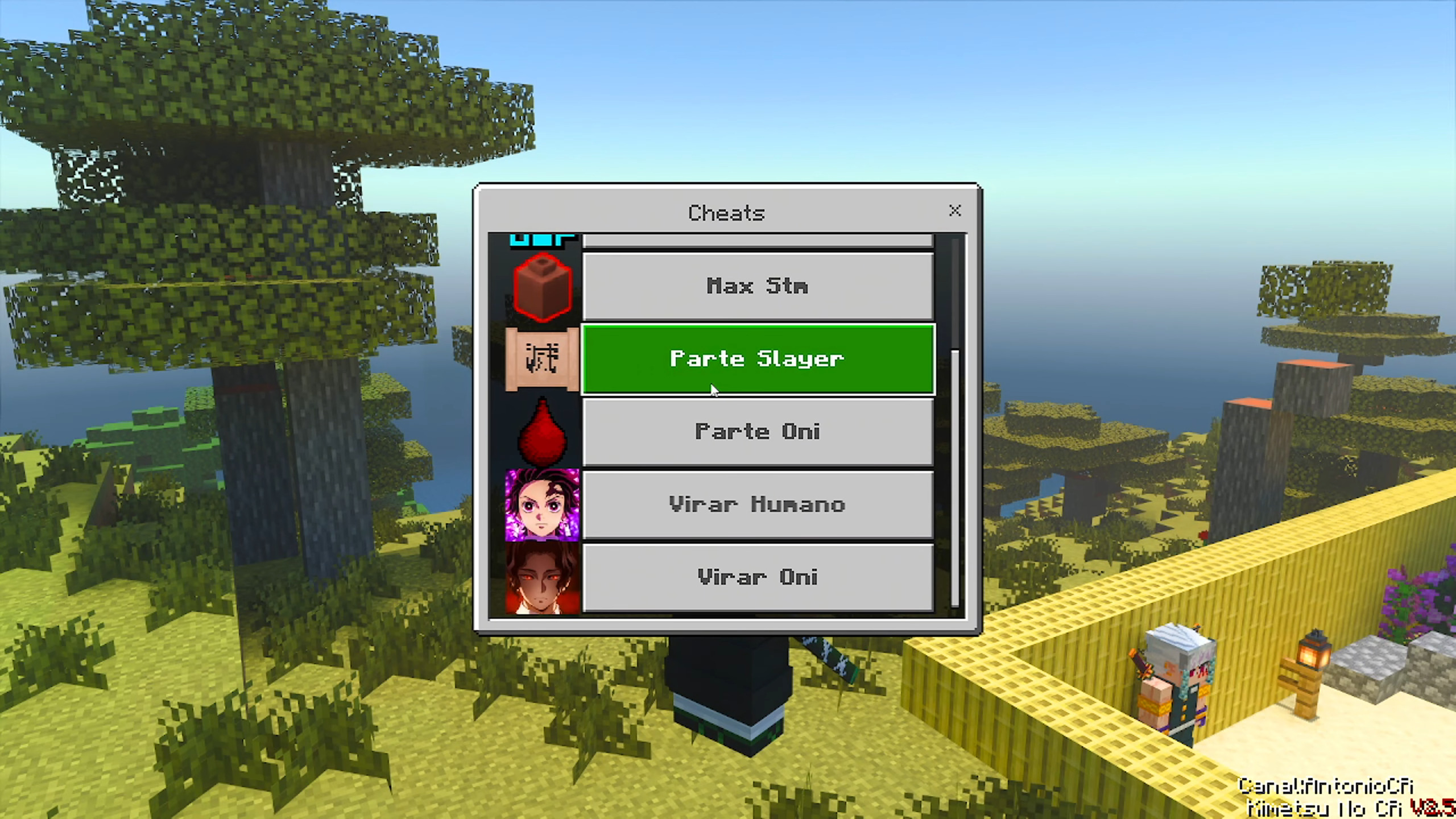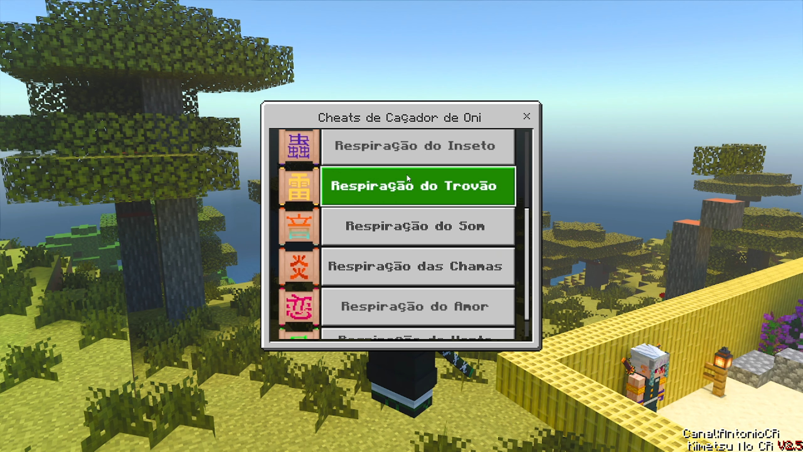 Kimetsu No CR Addon (1.21) is a Demon Slayer (Kimetsu no Yaiba) addon emphasizing anime-accurate breathing styles (Respiração) with unlockable forms via missions/levels, custom Nichirin swords (Obanai, Uzui, Tengen), demon transformations/Blood Demon Arts (Kekkijutsu), high-quality animations/VFX, player mechanics (dash/super jump), haori, structures (Shinobu’s House, Entertainment District), Hashira training/NPCs (Rengoku w/ phase 2), and HUD tweaks.