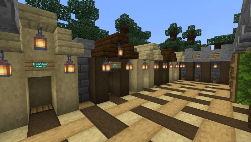 - Dressing Room: Includes 5 separate kit selection rooms. When entering the room, equipment such as armor, swords, bows, arrows, golden apples and many other PvP items will be automatically provided.