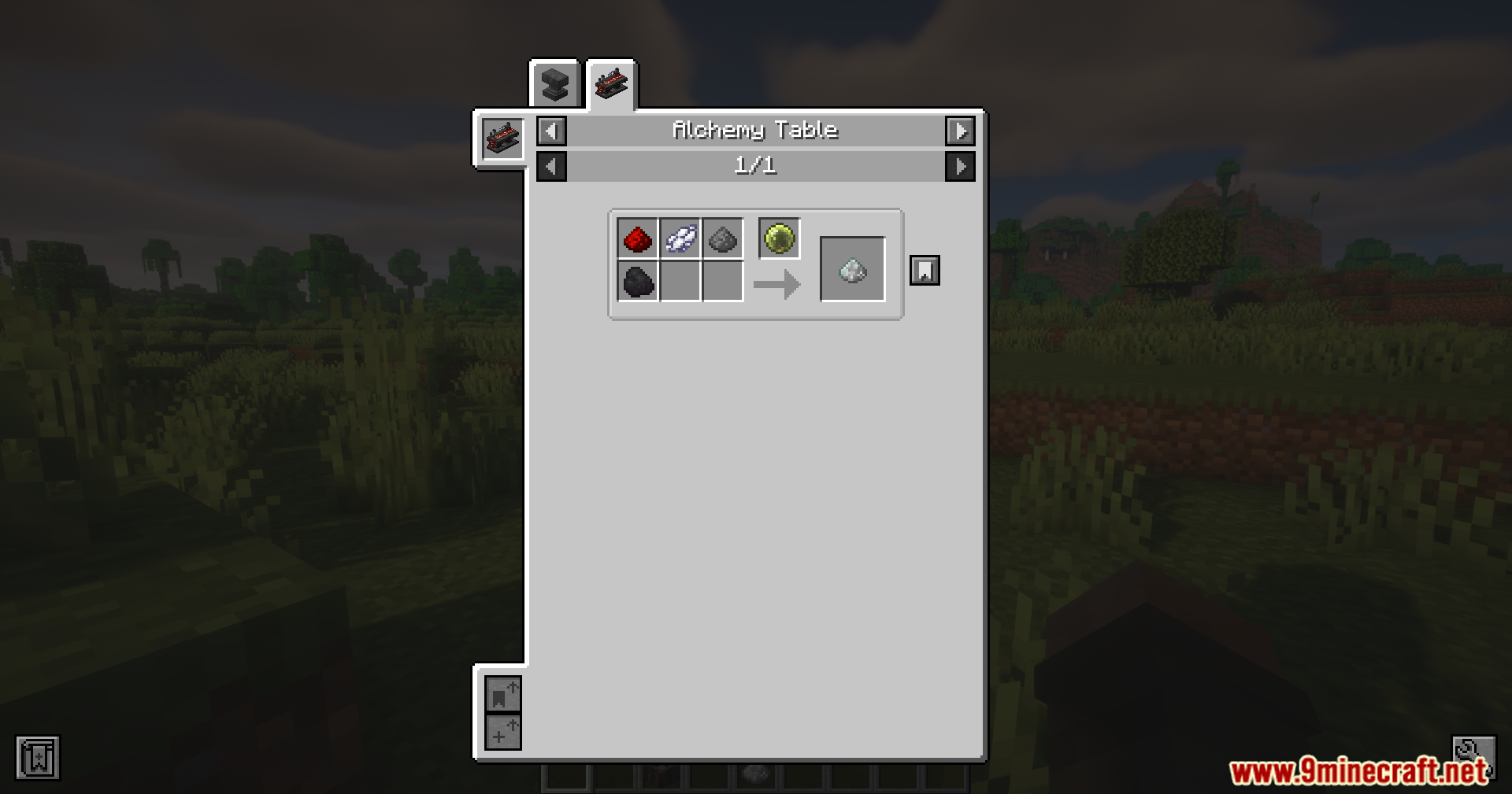 event.recipes.bloodmagic.arc(output, input, tool) with consumeIngredient toggle. - Alchemy Table Recipes: