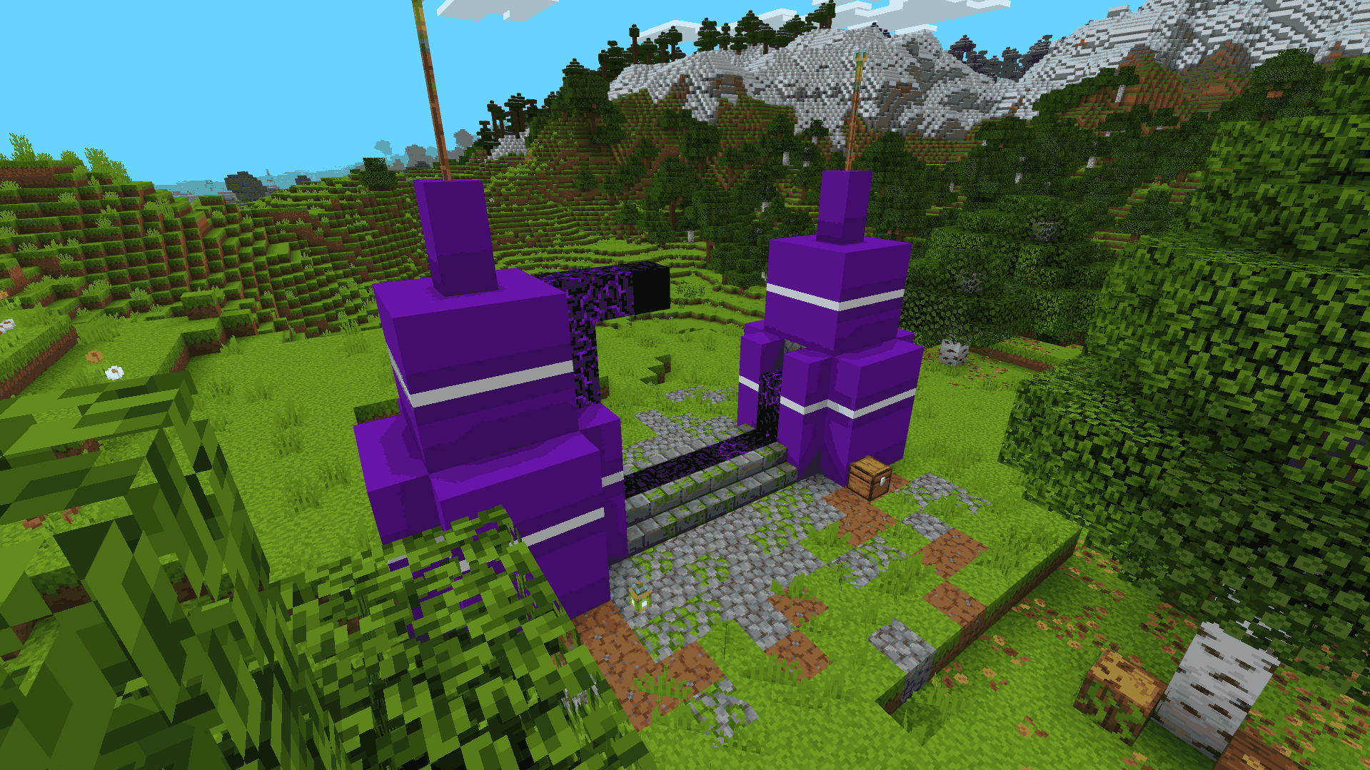 L1lhsv’s New Mod Addon (1.21, 1.20) includes five different types of structures, including dungeons containing various items and stone statues containing ore. Players find new ore underground or inside the cone-shaped structures to use as crafting materials.