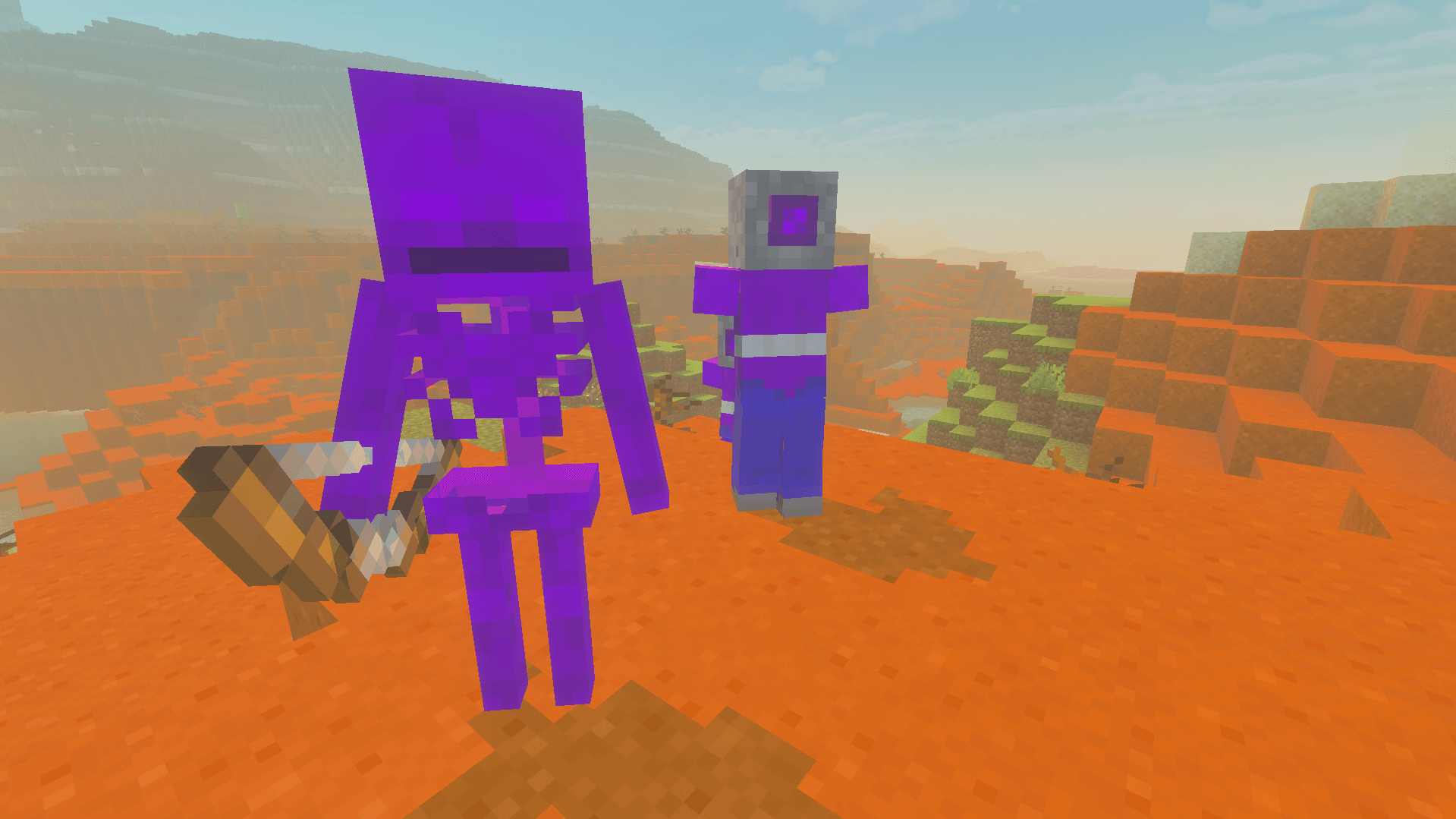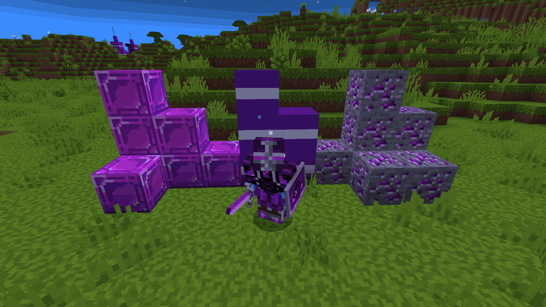 - Purple armor and swords.