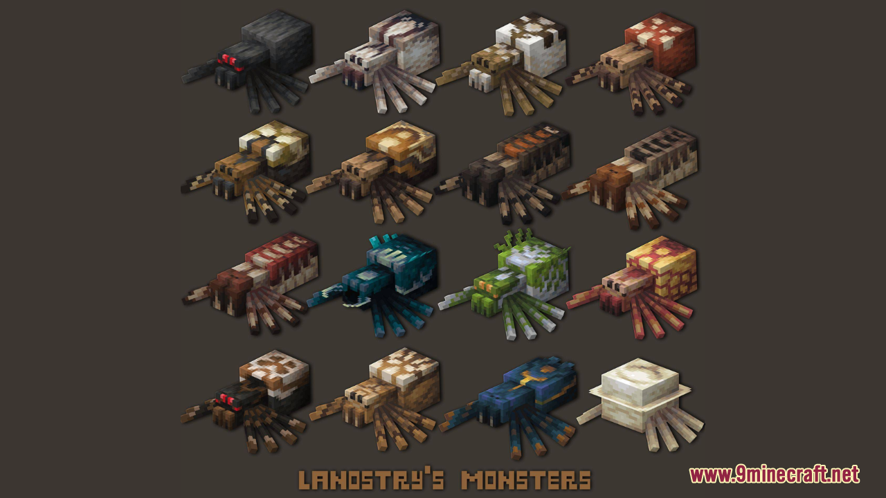 Lanostry’s Monsters Resource Pack (1.21.10, 1.20.1) is a 16× resolution resource pack that gives Minecraft’s vanilla mobs a fresh visual upgrade by introducing new textures – especially for spiders – and even allows name-based skin changes for added variety. It recommends using mods like OptiFine or combinations of Entity Texture Features (ETF), Entity Model Features (EMF) and Custom Entity Models (CEM) for full effect – including custom model displays and changeable skins. With its focus on mob variation and customization, the pack is ideal for players who want more visual diversity and character in the creatures they encounter without altering gameplay mechanics.