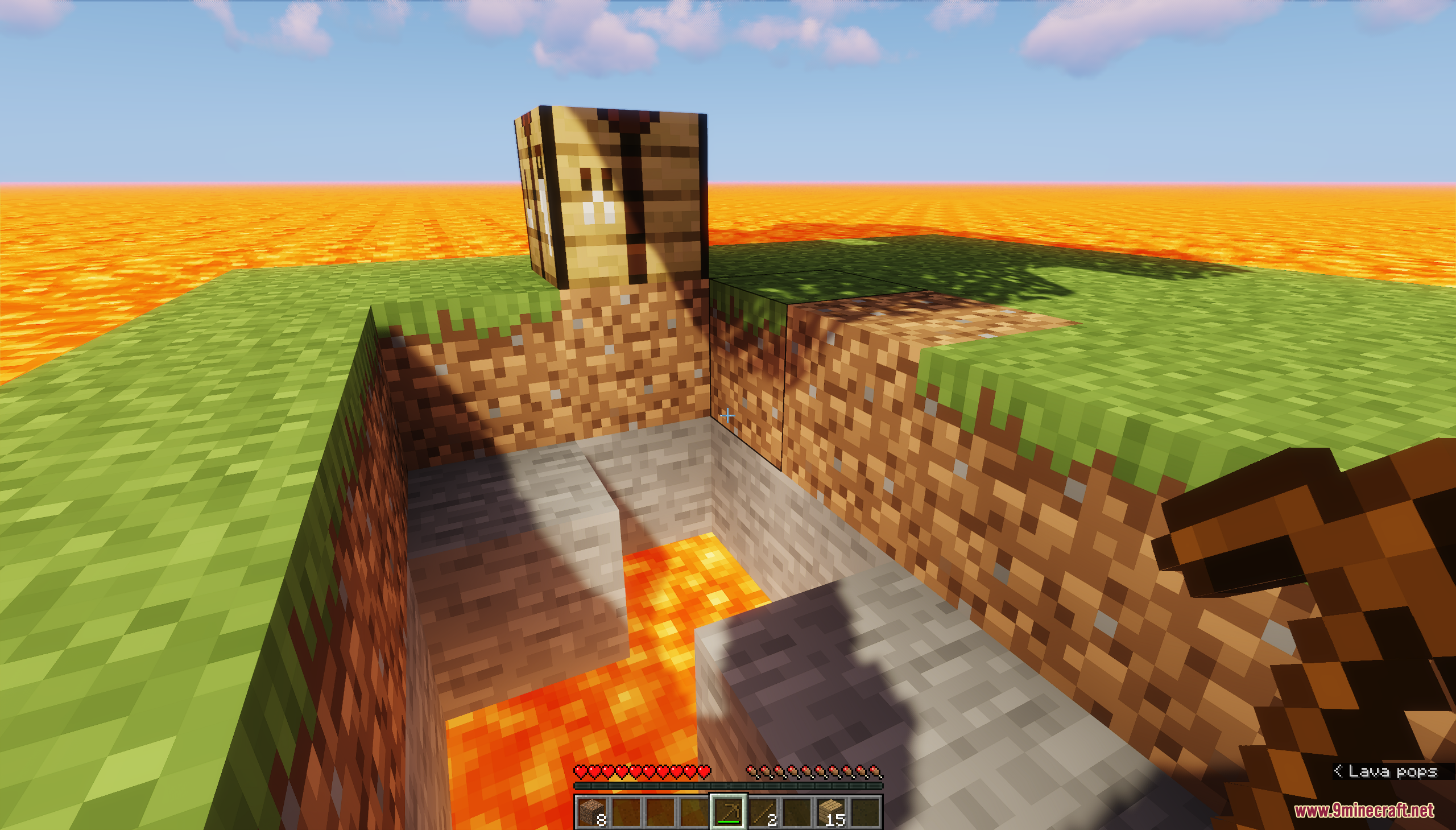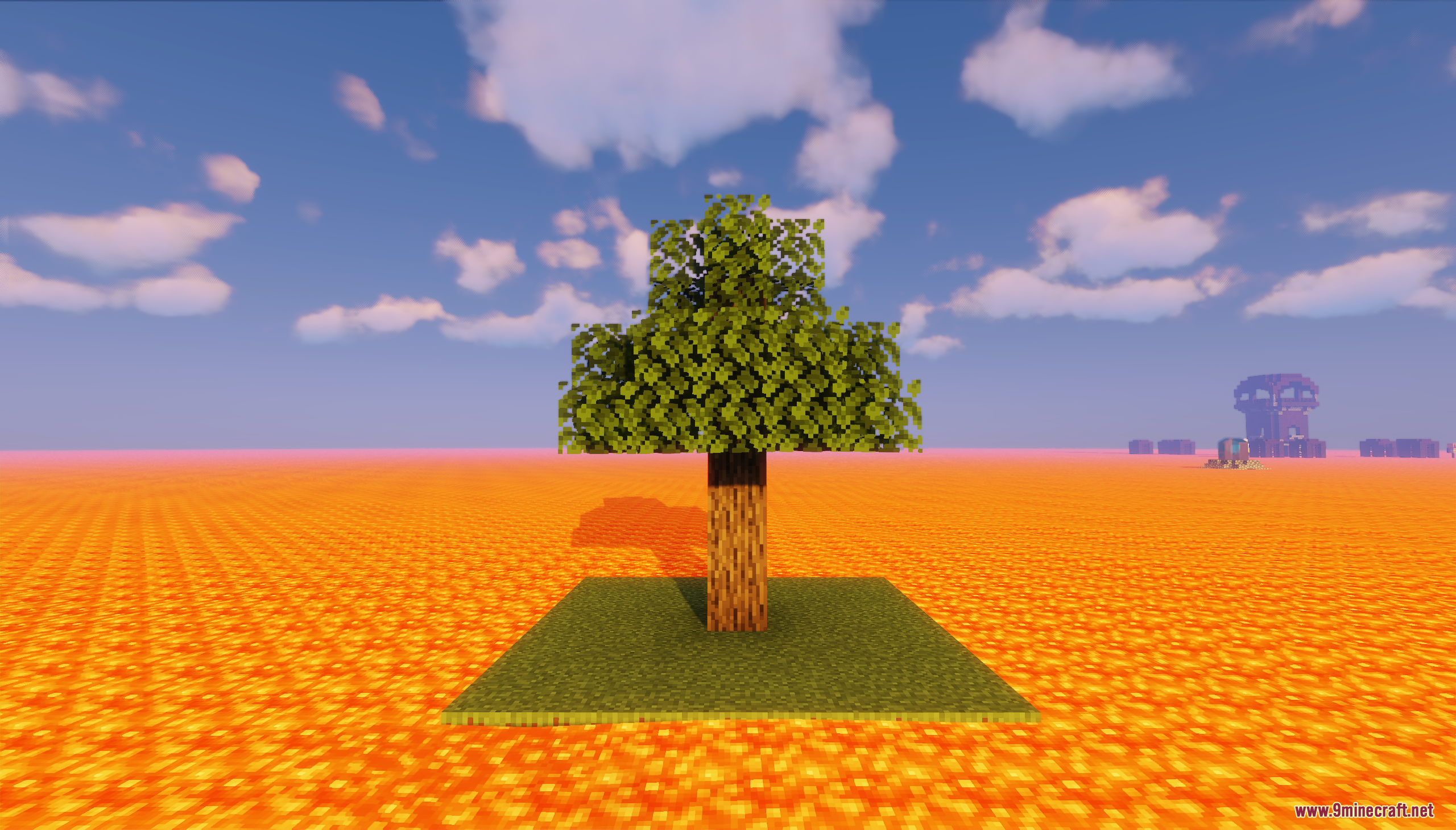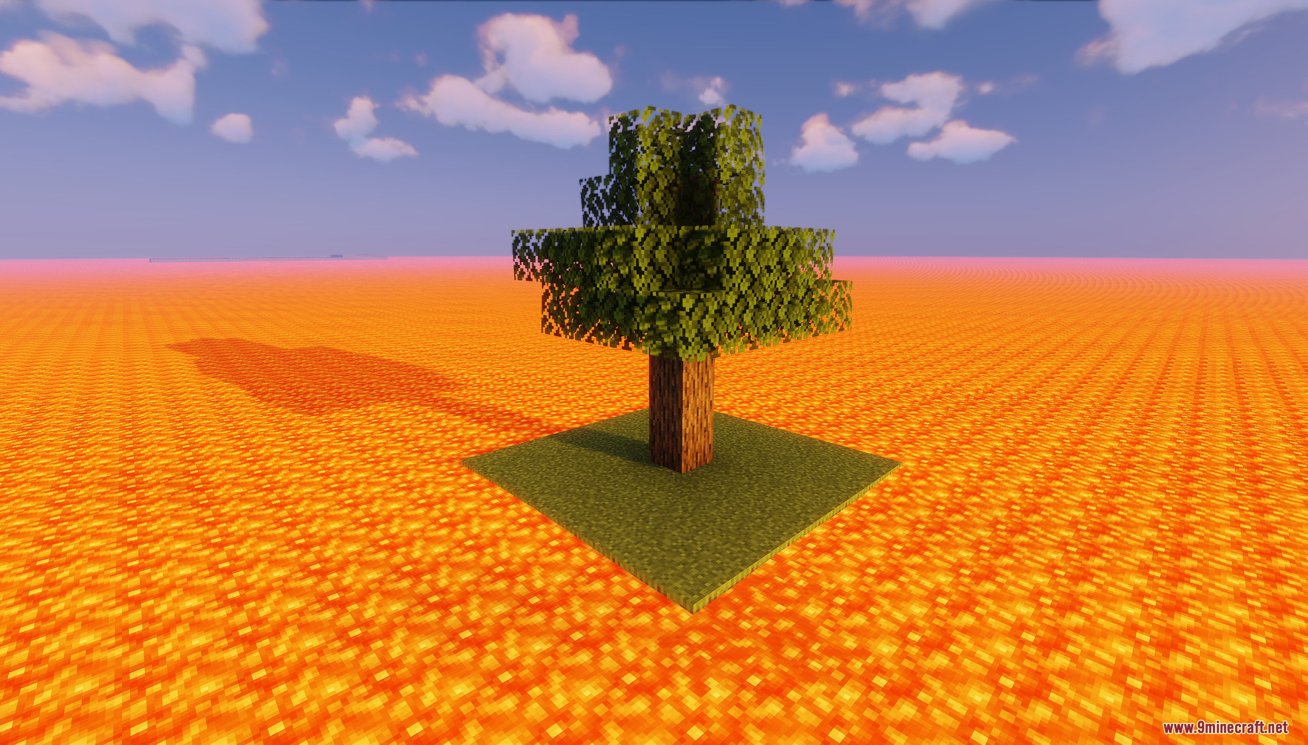 Lava SkyBlock Map (1.21.11, 1.20.1) throws the classic Skyblock formula into the fire by replacing the endless void with an unforgiving ocean of lava. Starting on a tiny island with only a handful of blocks and a single tree, every action becomes a high-risk decision where one misstep means instant death. With no water, no safety net, and constant pressure to think ahead, this map delivers a brutal survival experience perfect for players seeking one of the toughest Skyblock challenges Minecraft has to offer.