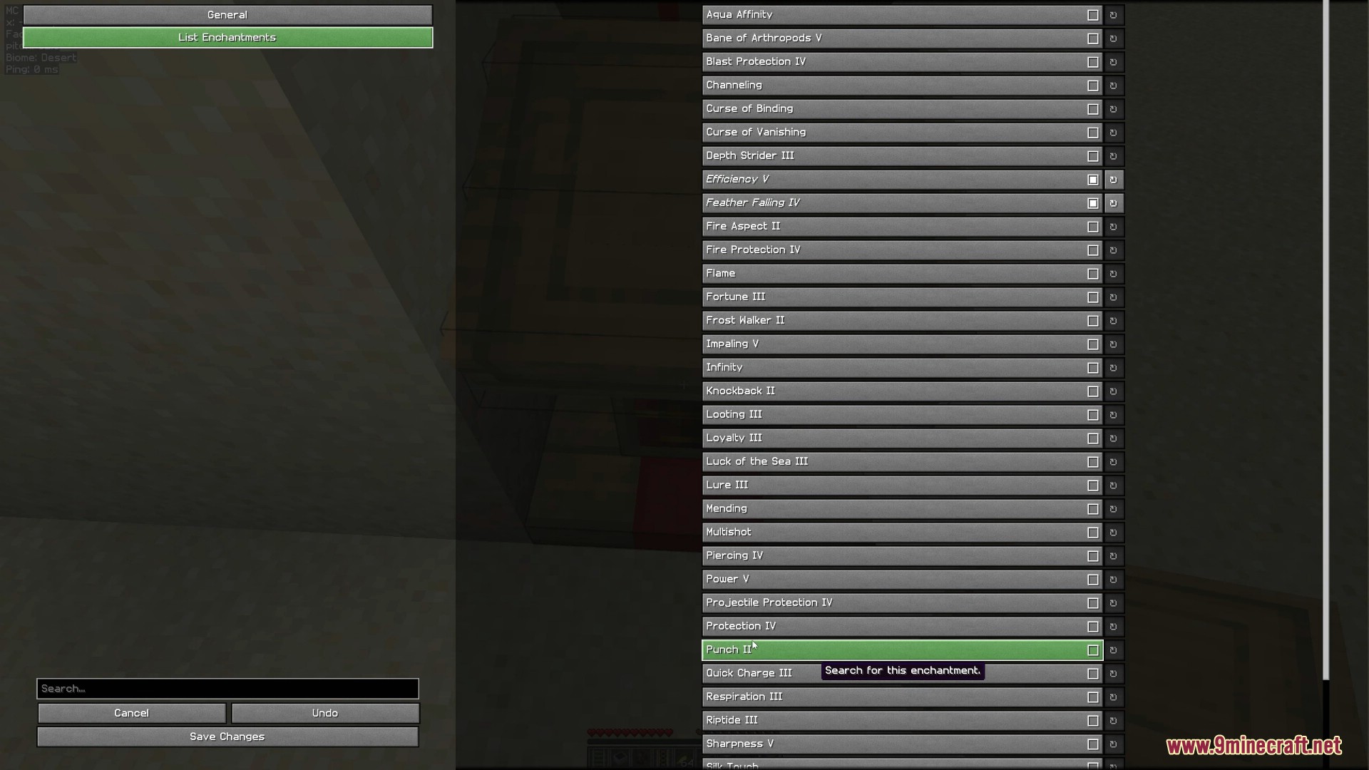 - The mod will search until it finds any of the selected enchantments, then stop and notify you.