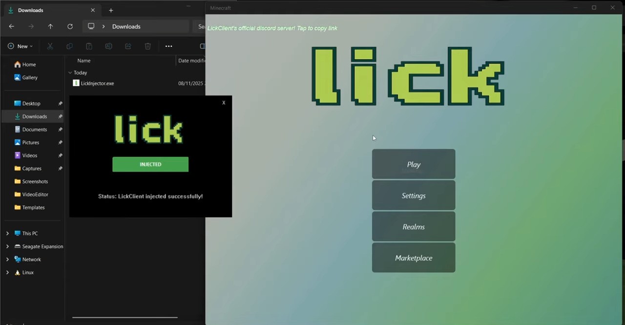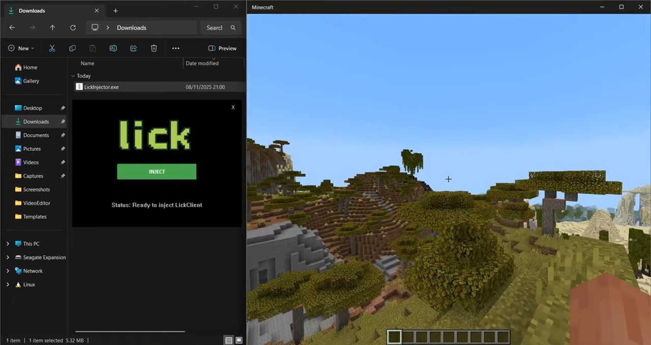 Lick Client (1.21.94) is a hack client (injector) for Bedrock Edition that is designed to provide unfair gameplay advantages like seeing through blocks, automated mining, and combat boosts. It’s one of the first Bedrock hack clients distributed as a standalone .exe file that reportedly doesn’t trigger antivirus false positives (unlike many others).
