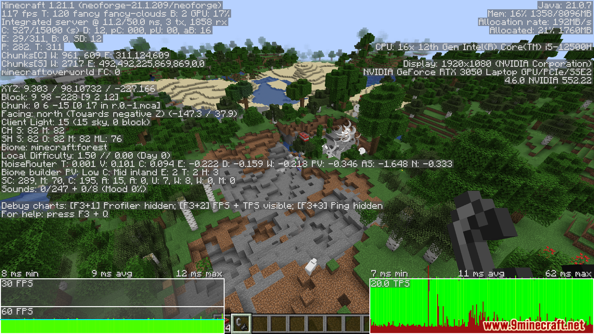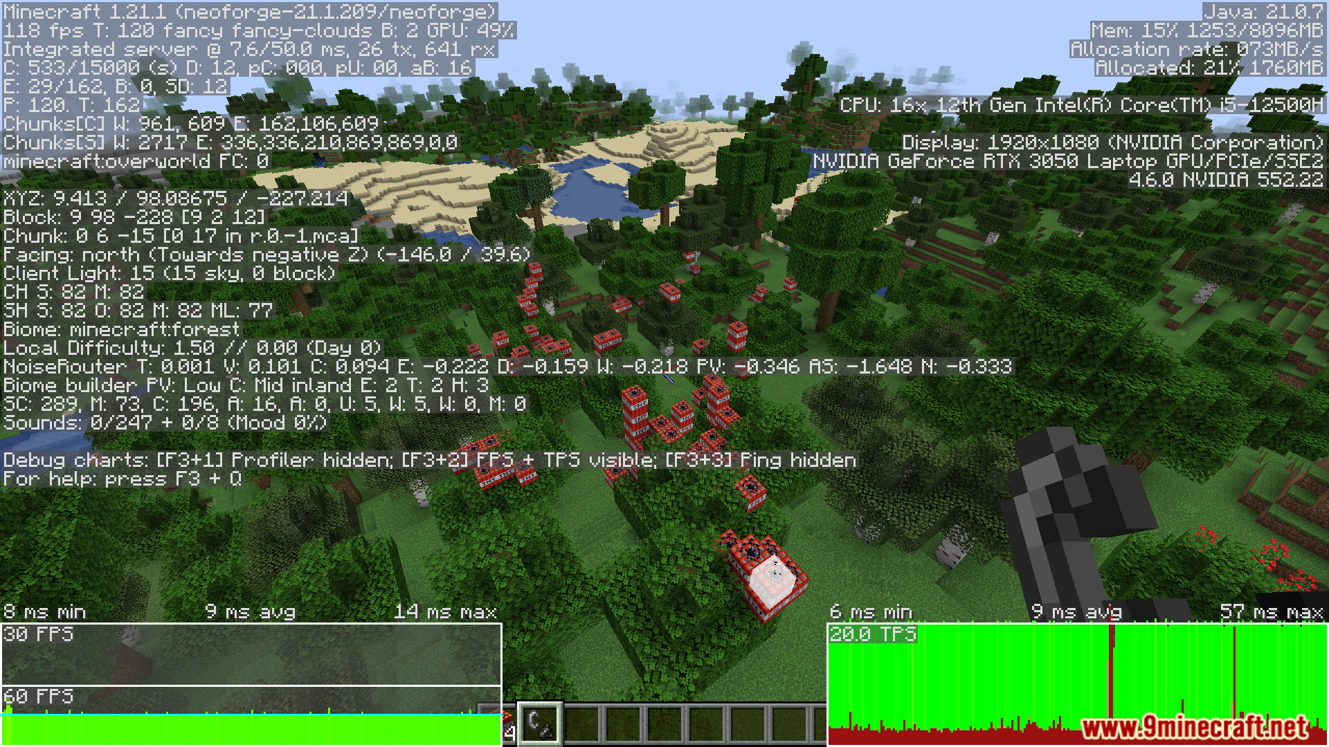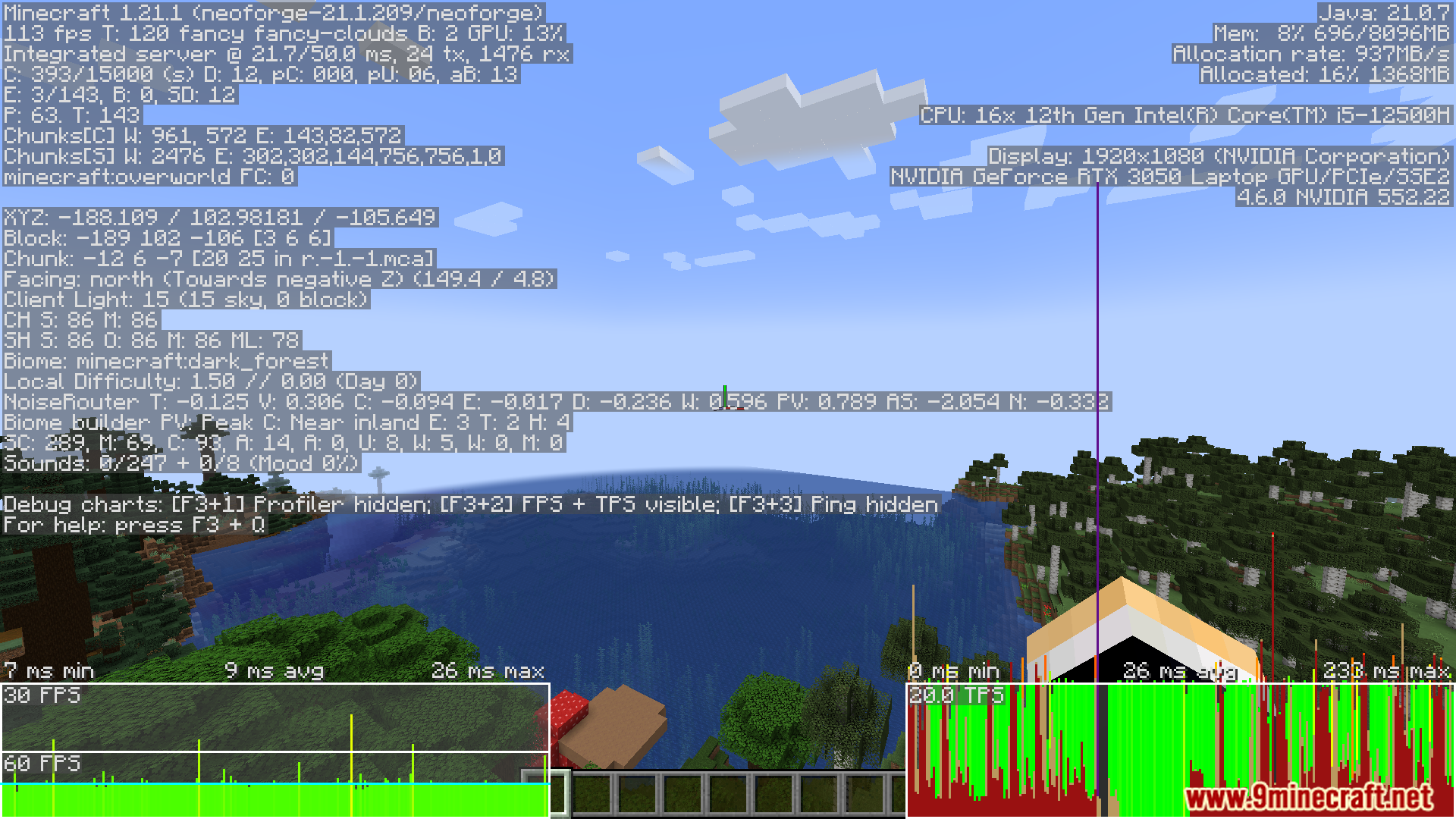 - World generation optimizations: Many calculations in vanilla’s world generation are unnecessary and do not affect the final result, which gives ample opportunity for Lithium to optimize this overhead away.