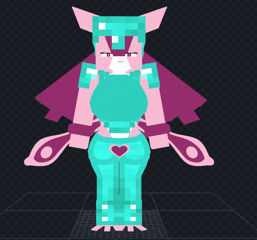 Lovander Ellie Jenny Mod Model is inspired by Lovander, a female Migo (alien-like creature) from No Man’s Sky (2016, with 2025 updates). This model has a pink anthropomorphic creature with fox ears, red eyes, a small mouth, purple cape-like wings, emerald armor plates on shoulders and chest, a heart emblem on her belly, purple tendril arms, and teal pants over a busty, curvy figure.