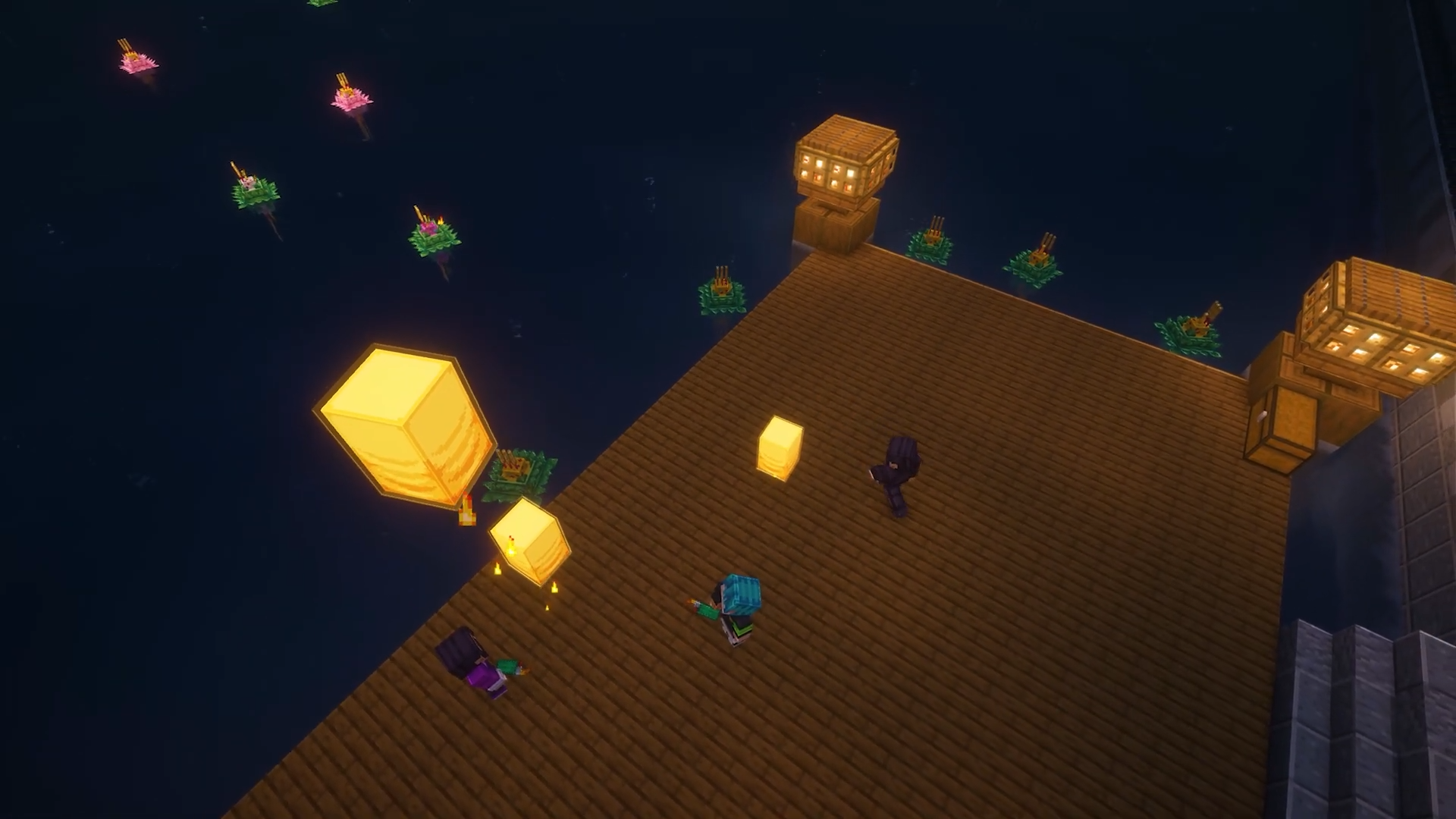 Loy Krathong Addon (1.21) adds the Loy Krathong festival with flower boats and sky lanterns. Using virtual items helps preserve cultural traditions and avoid environmental pollution. The collection includes 4 types of flower boats, lanterns, and a lighter to light them. The flower boats float on the water, and the sky lanterns fly upwards after using the lighter.