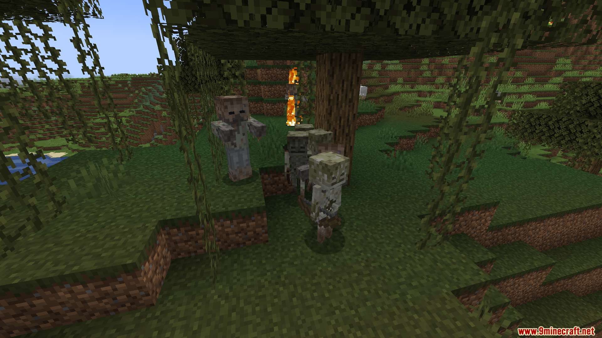 Luminous Monsters Mod (1.21.1, 1.20.1) introduces a variety of undead enemies—zombie and skeleton variants suited to different environments—giving the night a new threat.