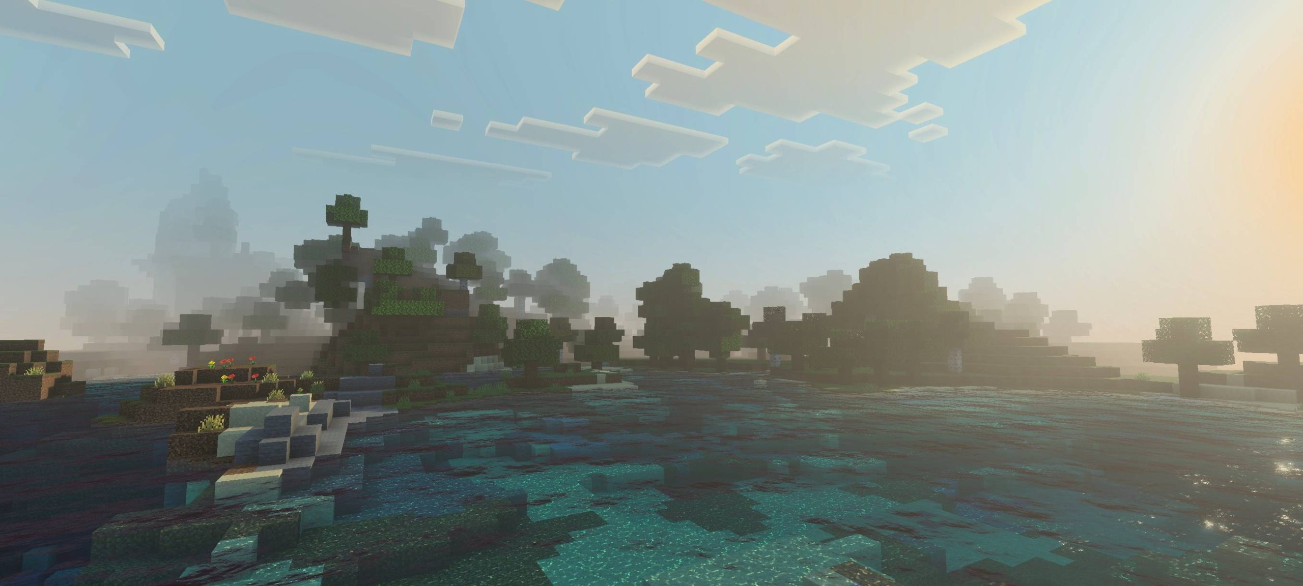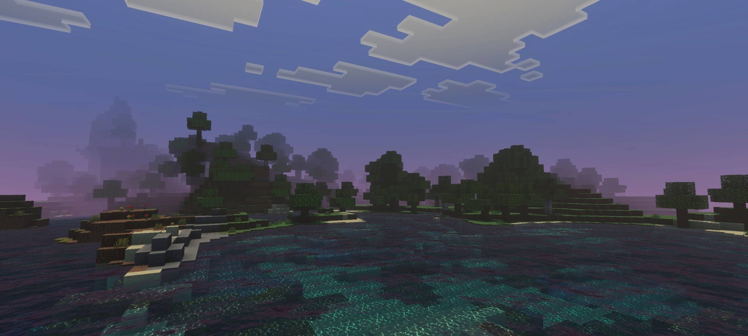 Lunatic Visual Shader (26.1) changes the image to resemble the Alaskan or highland regions. The bold sky colors create a fantastical, cartoon-like feel. The water features dynamic variations, and the fog is pushed further away to allow for a wider field of view. These elements create a unique and striking appearance for the landscape.